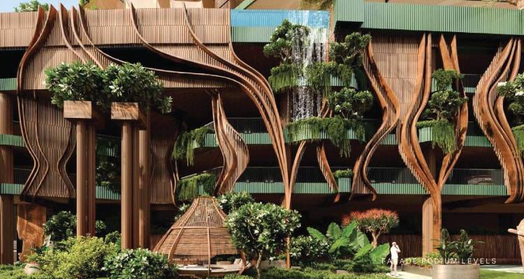 Strikingly unique from your very first glimpse, Eywa instantly evokes a glorious Tree of Life. An organic canopy of branches, an enticing weave of roots, a living breathing building that represents timeless wisdom and enduring growth. Open round columns, intertwining branches and trunks personify the Banyan tree, the Tree of Life, whose branches support our world and whose roots spread down into the underworld, a symbol of the constantly renewing and reviving world, an inexhaustible source of life.