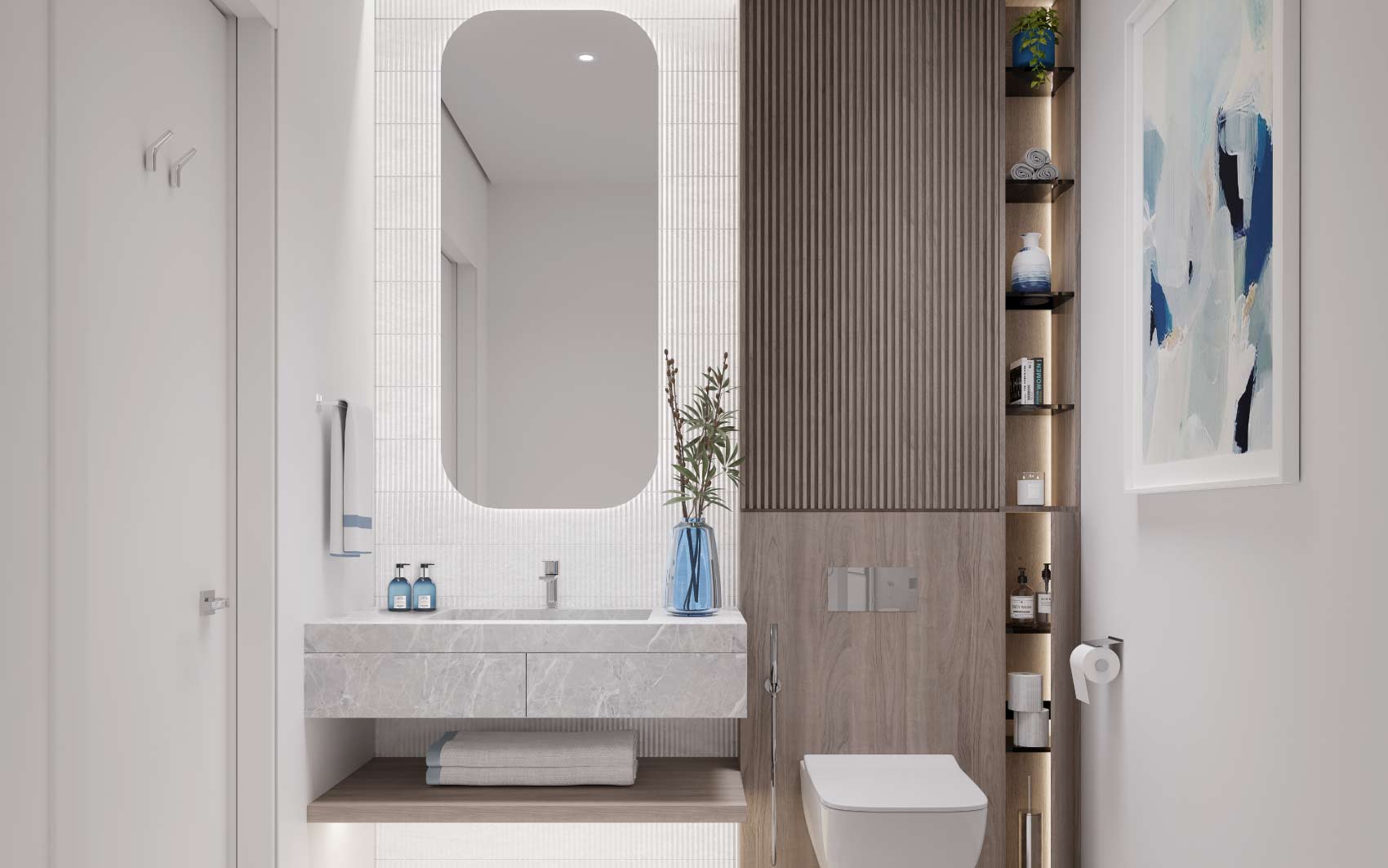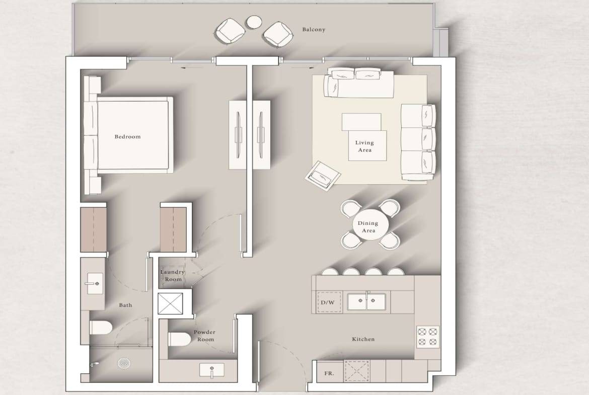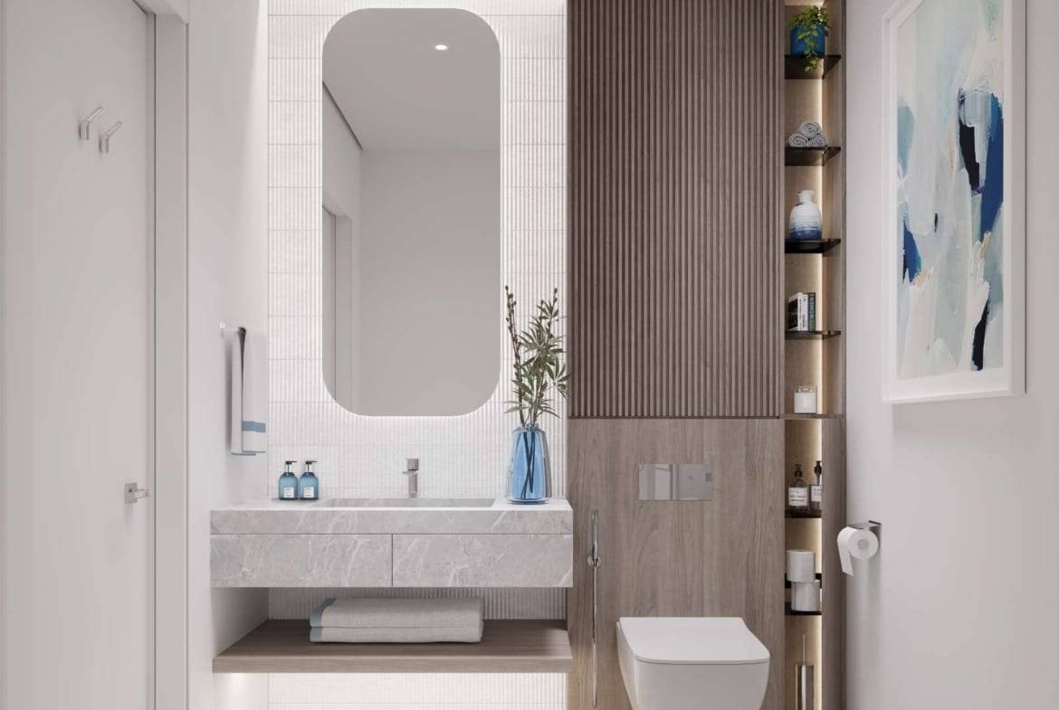Discover a 1-bedroom apartment at Art Bay, Al Jaddaf Waterfront by Ellington Properties. Art Bay’s minimalist design includes a grand, museum-inspired lobby, elegant furnishings, and gallery-like hallways leading to spacious, refined apartments. It encourages residents to shape their own creative home.
