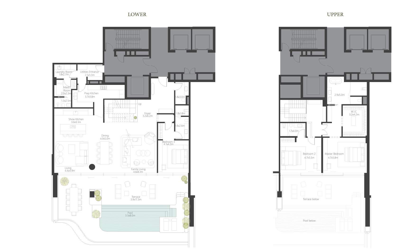 This stunning duplex apartment offers a spacious family living room, a maid’s room, and both a preparation kitchen and a show kitchen. It features generously sized walk-in closets as well as ensuite bedrooms for added privacy and comfort. Enjoy breathtaking sea views from the expansive terrace, complete with a private pool and lounge area—perfect for both relaxation and entertaining.
