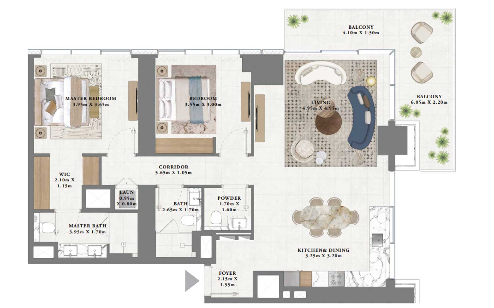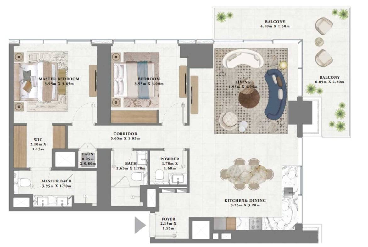 Welcome to a two-bedroom apartment at Emaar Albero Residences, located in the Green Gate at Dubai Creek Harbour area. Discover a home where luxury meets serenity. Spacious interiors in calming tones, elegant high-ceilinged lobbies, and sleek kitchens with premium appliances offer a truly refined living experience.