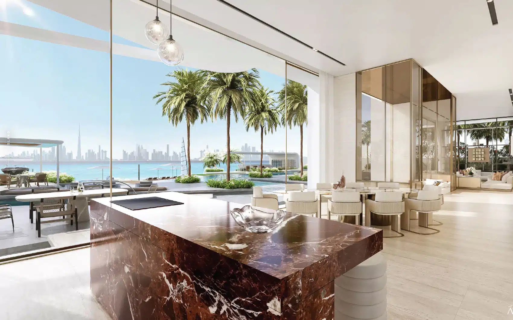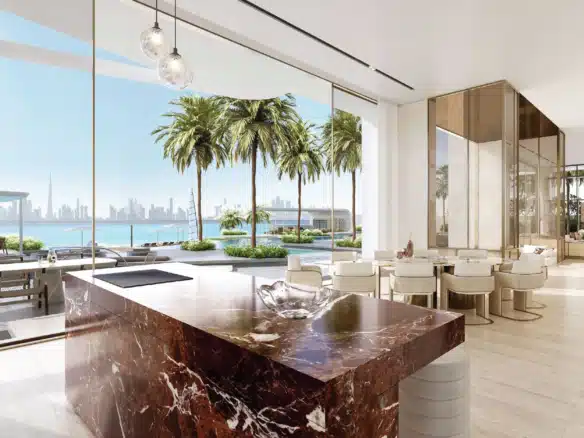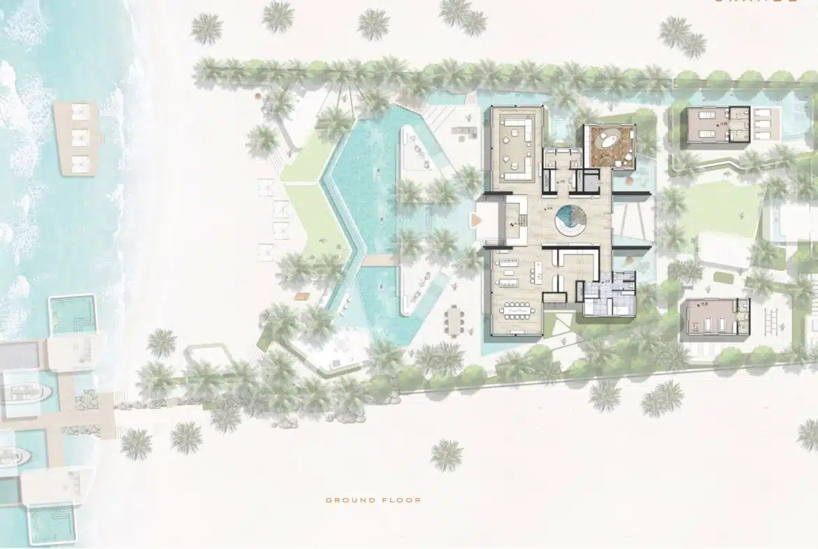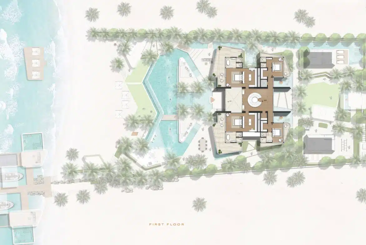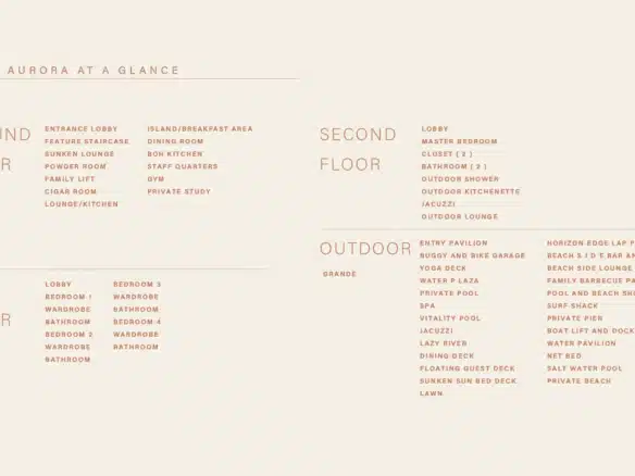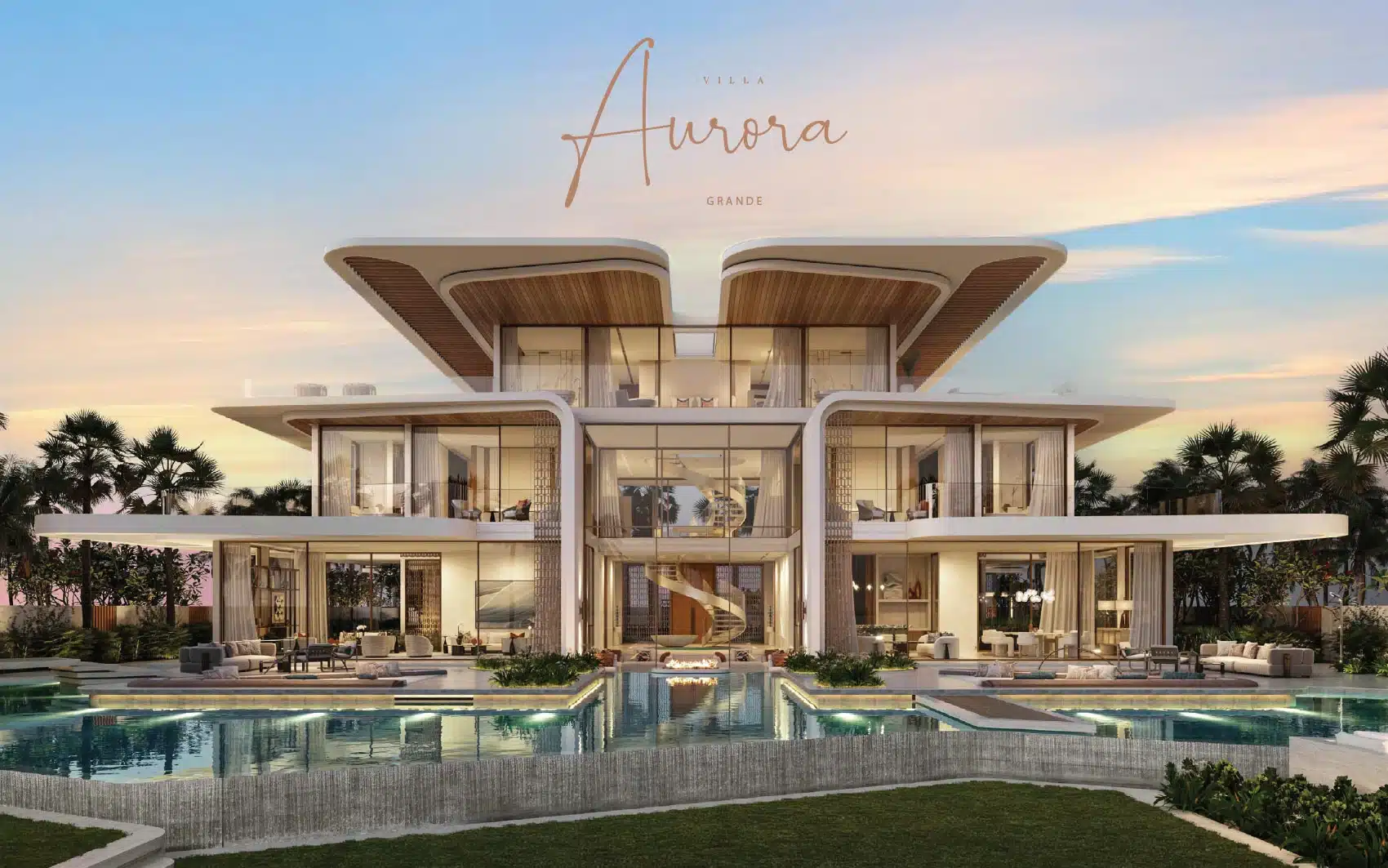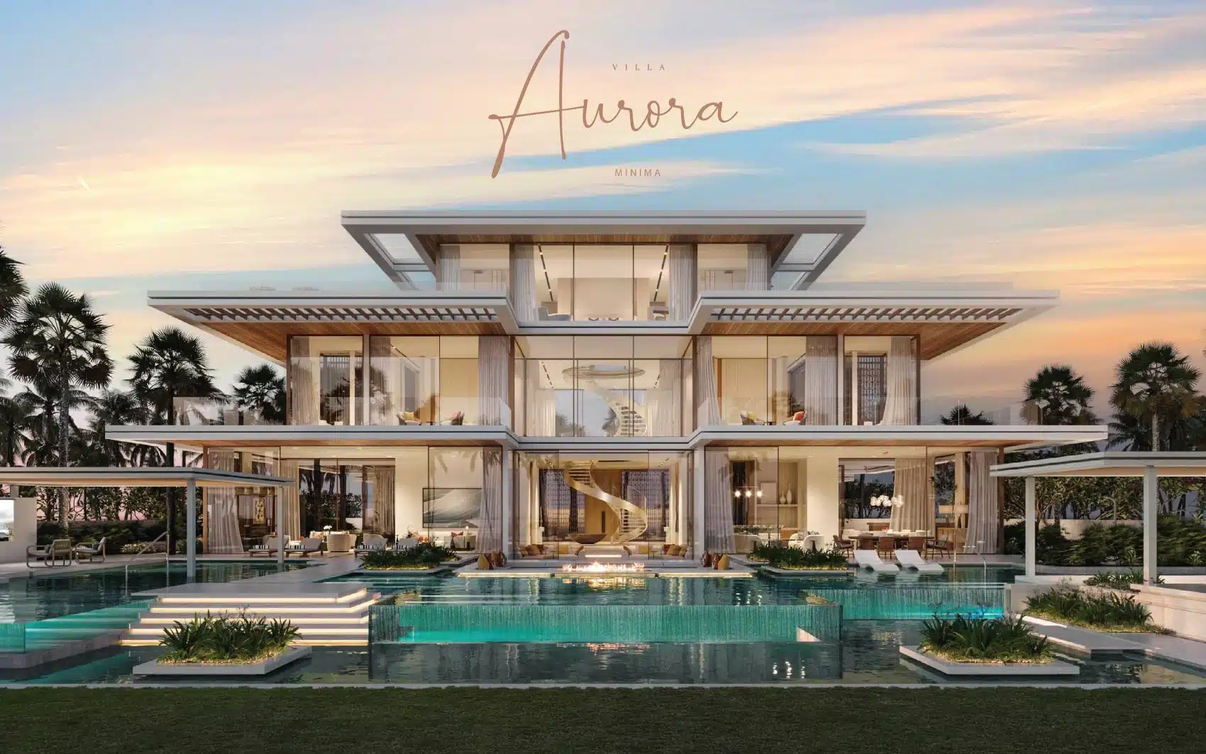 Amali Island Aurora Mansion rises from the shore in either Grande or Minima exterior styles. Amali island mansion for sale creates two unique luxurious home environments to choose from where individuals can express their personal style and create a customized interior design. A buyer can choose TERRA (Modern, Subtle and Earthy Hues), or, ULTRA (Opulence, Extravagance, and Classic Tones).