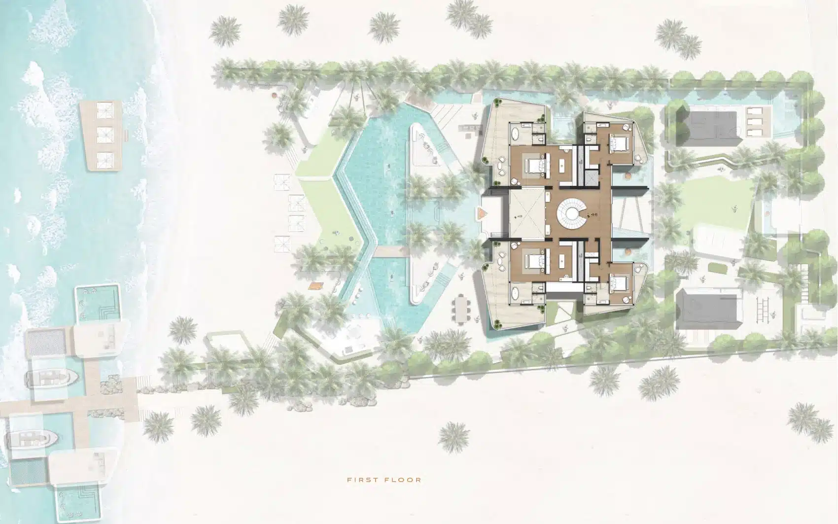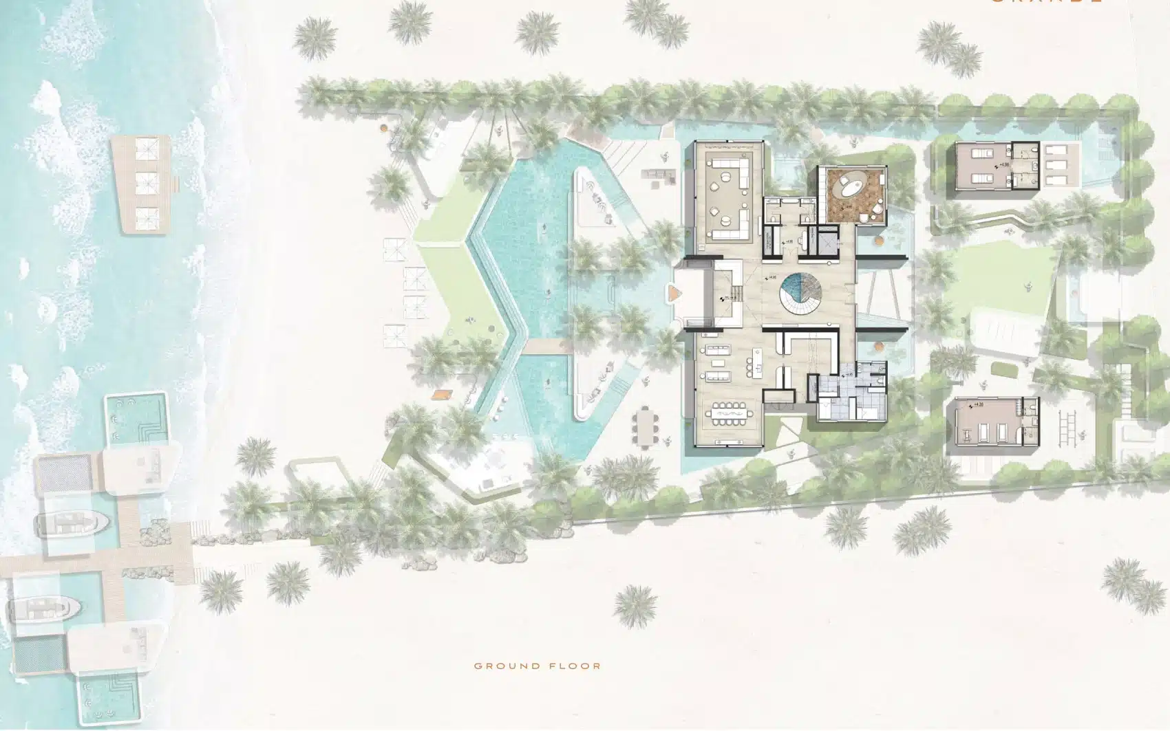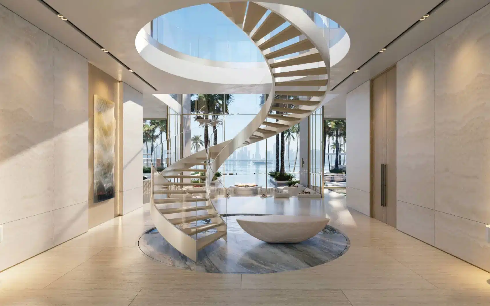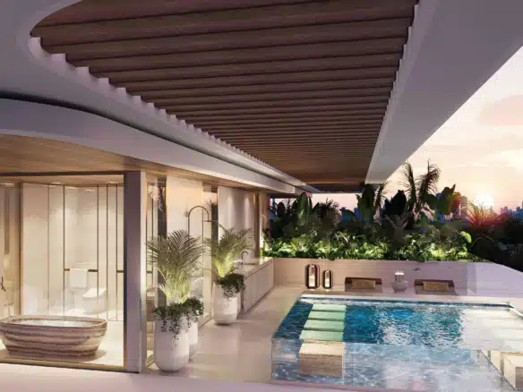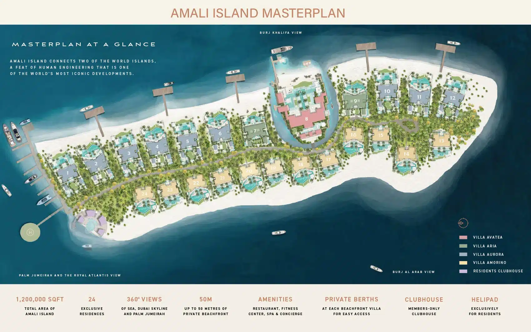 Amali Island Aurora Mansion rises from the shore in either Grande or Minima exterior styles. Amali island mansion for sale creates two unique luxurious home environments to choose from where individuals can express their personal style and create a customized interior design. A buyer can choose TERRA (Modern, Subtle and Earthy Hues), or, ULTRA (Opulence, Extravagance, and Classic Tones).