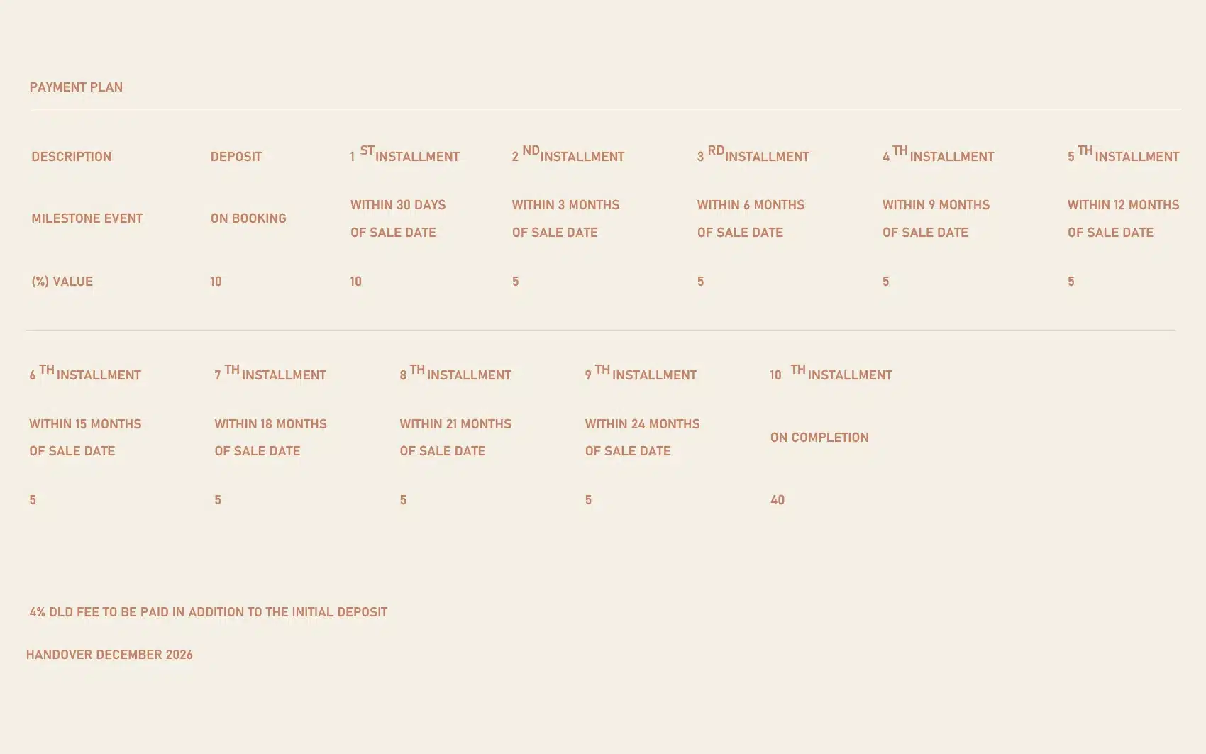 40% – Upon Handover