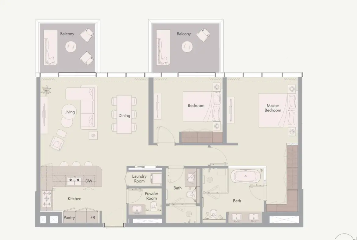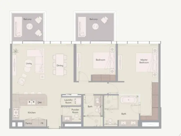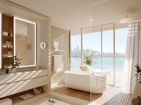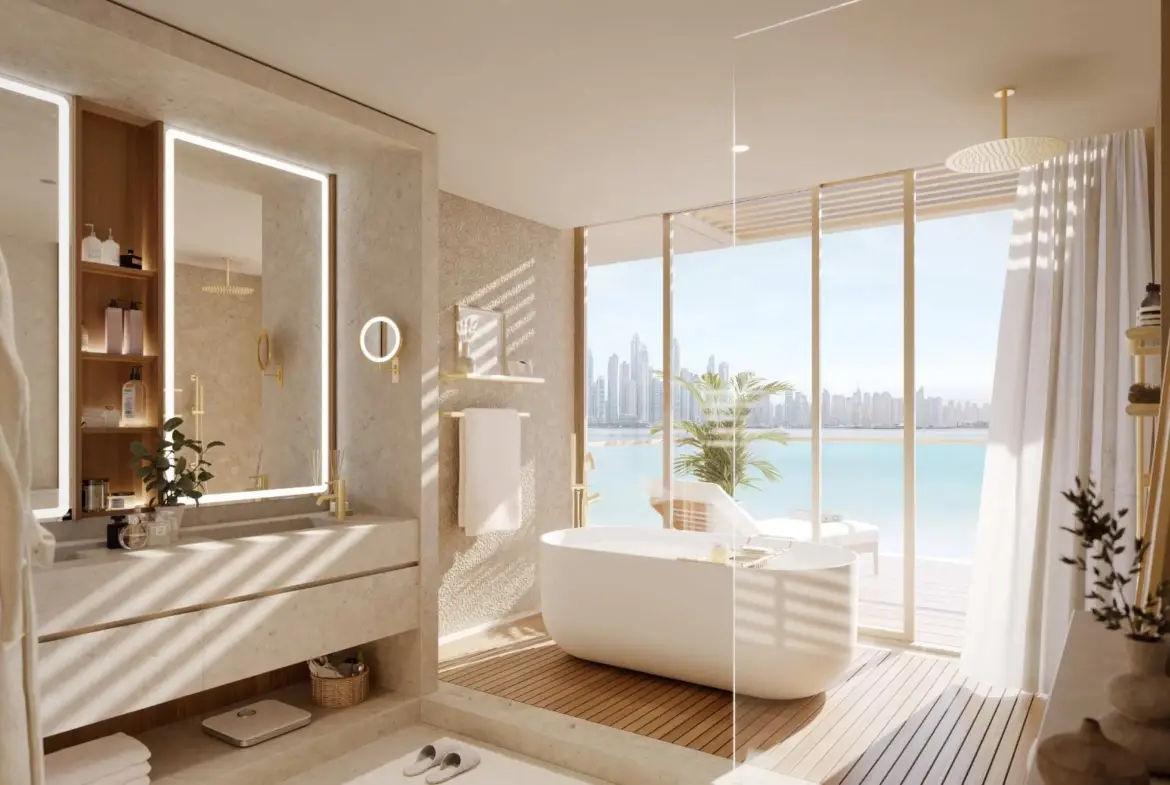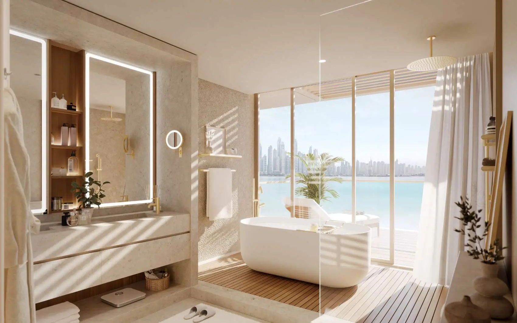Welcome to a 2-bedroom apartment with Atlantis view at Ellington Beach House, Palm Jumeirah by Ellington Properties. The Beach House features a private beach access with cabanas, an outdoor refreshment area, and iconic sun loungers. It’s your exclusive retreat for relaxation and rejuvenation amidst island tranquility.
