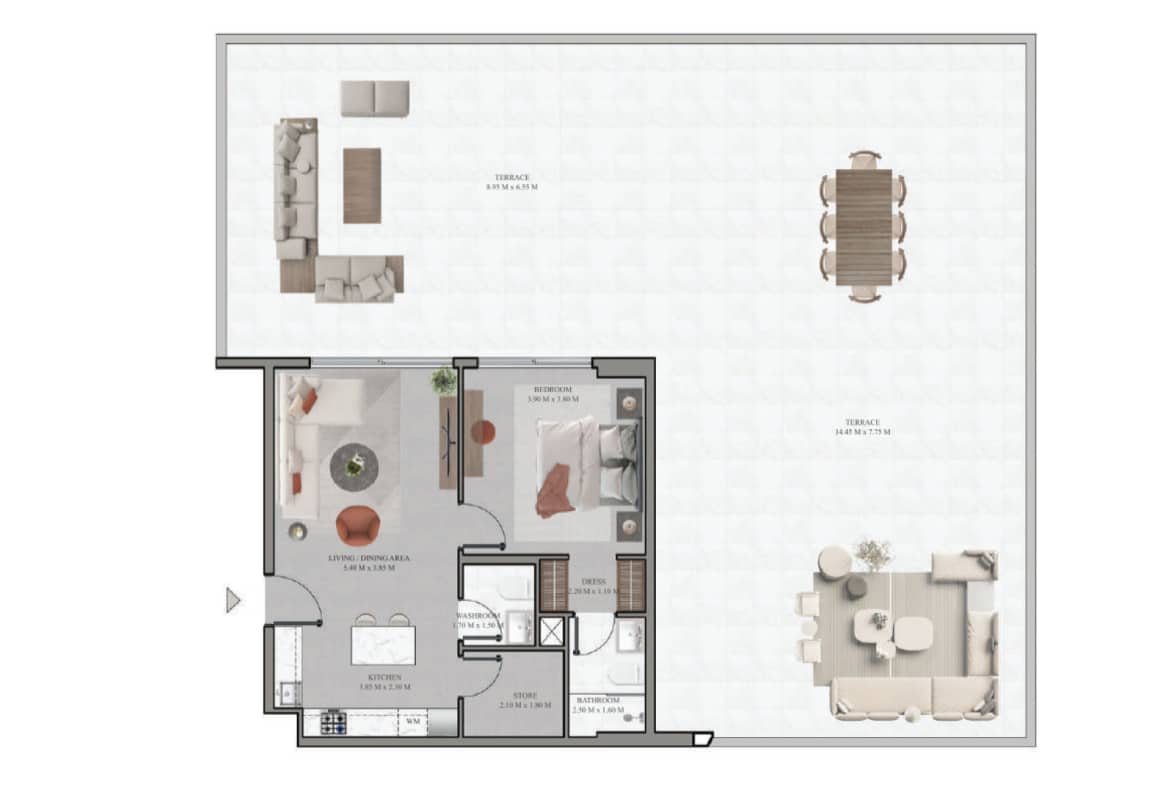 Arista One by Refine meticulously designed 1 and 2 bedroom residences, where floor-to-ceiling windows illuminate elegant interiors and unveil captivating urban vistas. Every detail reflects a commitment to luxury, functionality, and timeless design. The architectural vision is executed with meticulous attention to detail, beginning with a sophisticated lobby that greets residents on the ground floor. Each residence is thoughtfully crafted with a modern aesthetic and premium quality finishes.