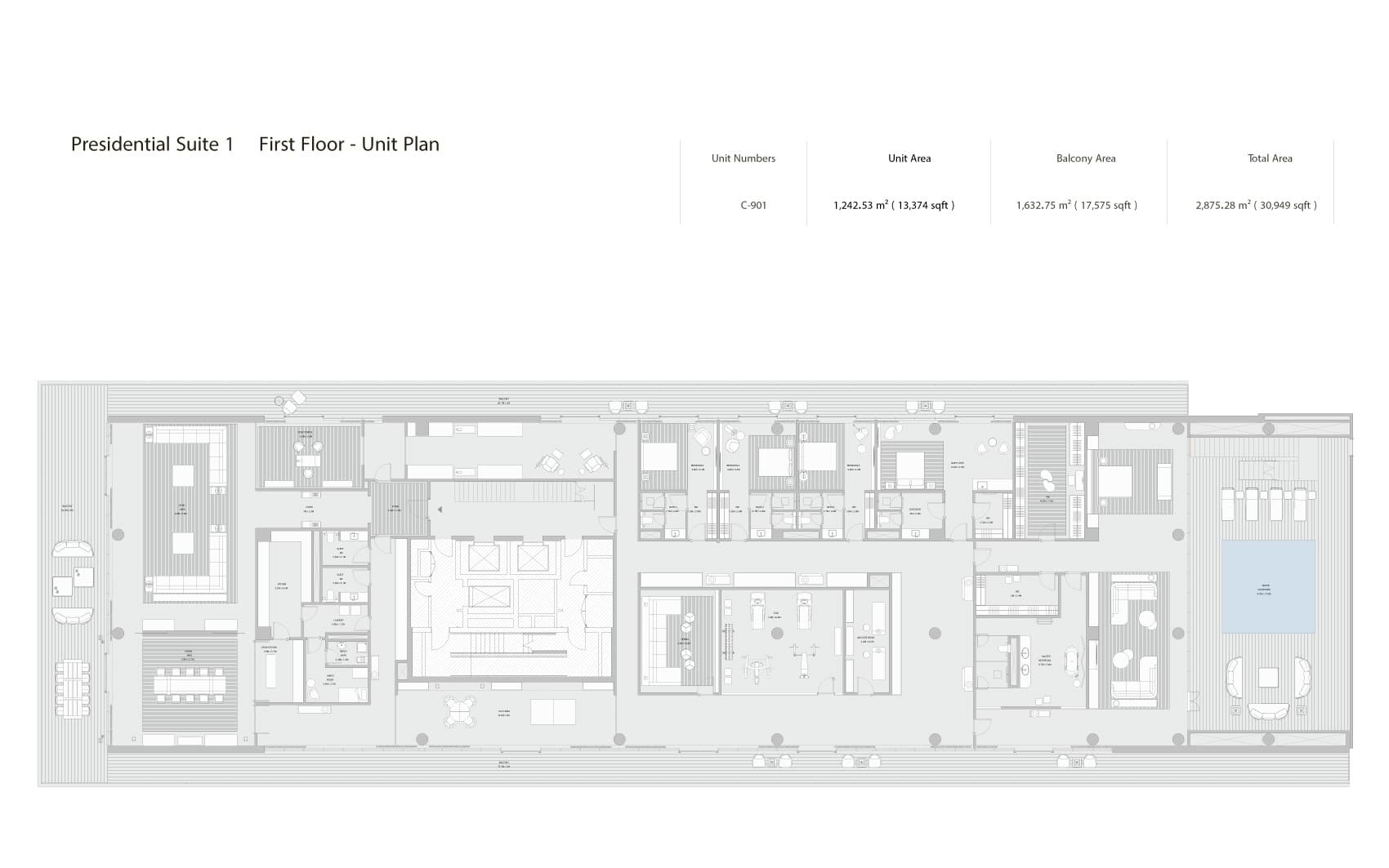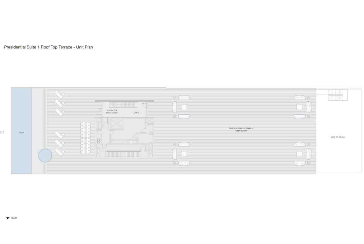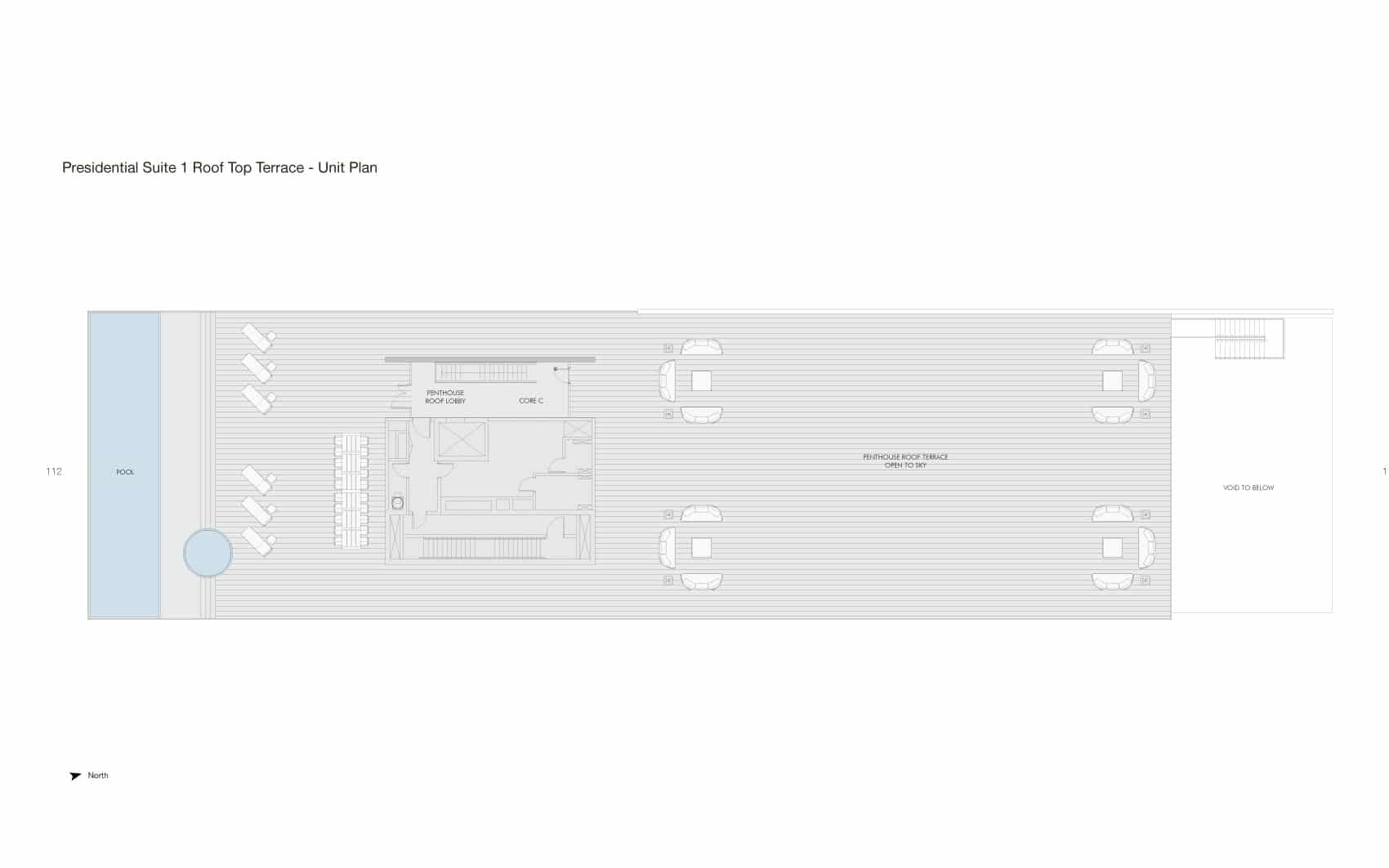 Each Presidential Suite contains a large pool, as well as a children’s pool/jacuzzi, while a key feature is a contemplative courtyard space designed by Tadao Ando includes a reflective water feature and access to the open sky.