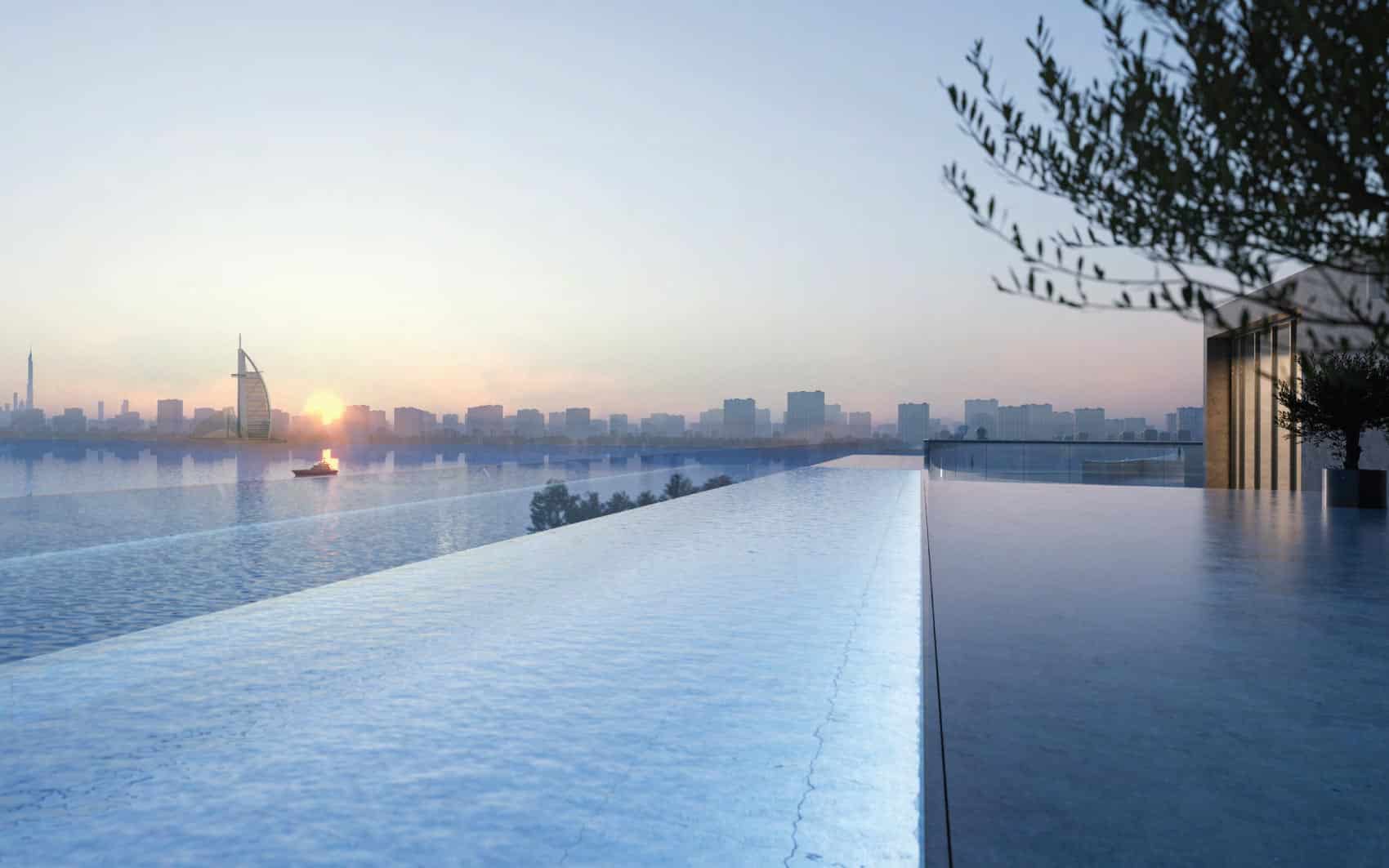 Spread over two levels, the Presidential Suites at Armani Beach Residences at Palm Jumeirah feature ultra-luxurious mega-roof terraces, as well as terraces and courtyards offering unfiltered views across the Arabian Gulf and the Dubai skyline including Burj Khalifa, Ain Dubai, Burj Al Arab, Atlantis Hotel and Palm Jumeirah.