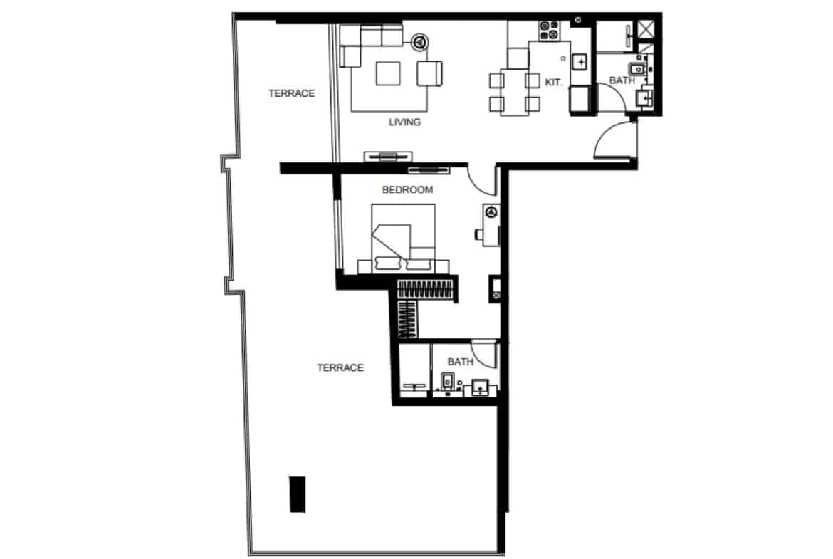 Welcome to a one-bedroom apartment with huge terrace at Binghatti Dusk located in Jumeirah Village Circle. The façade features two basement levels, a ground floor with retail shops, four residential floors, and a rooftop, seamlessly integrating residential and also retail spaces. Furthermore, meticulously designed interiors exude understated opulence and impeccable craftsmanship, seamlessly transforming living spaces into true works of art.