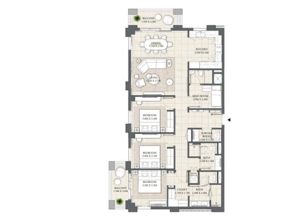 Experience coastal luxury in a stunning three-bedroom apartment at EMAAR Moor, where elegant design meets serene waterfront living. Is a premium development by Emaar located in Dubai Creek Harbour, offering comfortable 1 to 3-bedroom residences. The project comprises four stylishly designed buildings, each featuring a ground floor, mezzanine, and 5 to 8 residential levels.