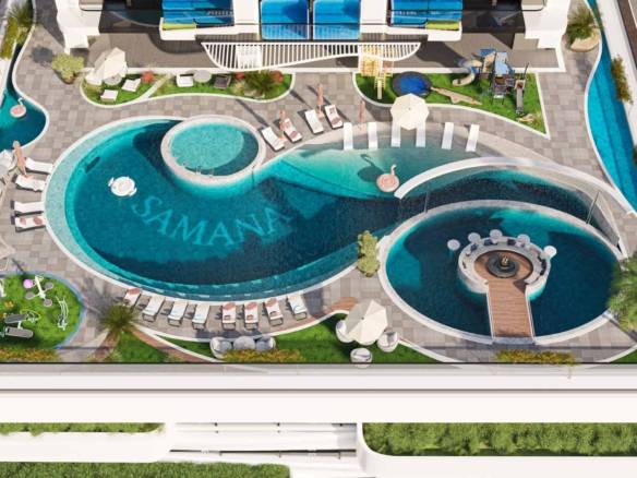 SAMANA Manhattan offers a 2-bedroom contemporary poolside apartment with a private pool, setting a new standard in contemporary living. Therefore, this exceptional development by SAMANA Developers combines luxurious amenities, stunning design, and a prime location for an unparalleled lifestyle.