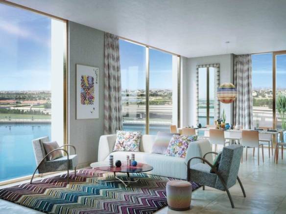 The Urban Oasis by DarGlobal present a unique residential tower overlooking the Dubai Canal, featuring signature Missoni interiors that capture the vibrant essence of Miami living. An iconic residential tower in Dubai, adorned with exquisite home accessories and vibrant, colorful interiors. Showcasing Missoni’s signature interpretation of the elite Miami lifestyle—where high fashion meets luxury living.
