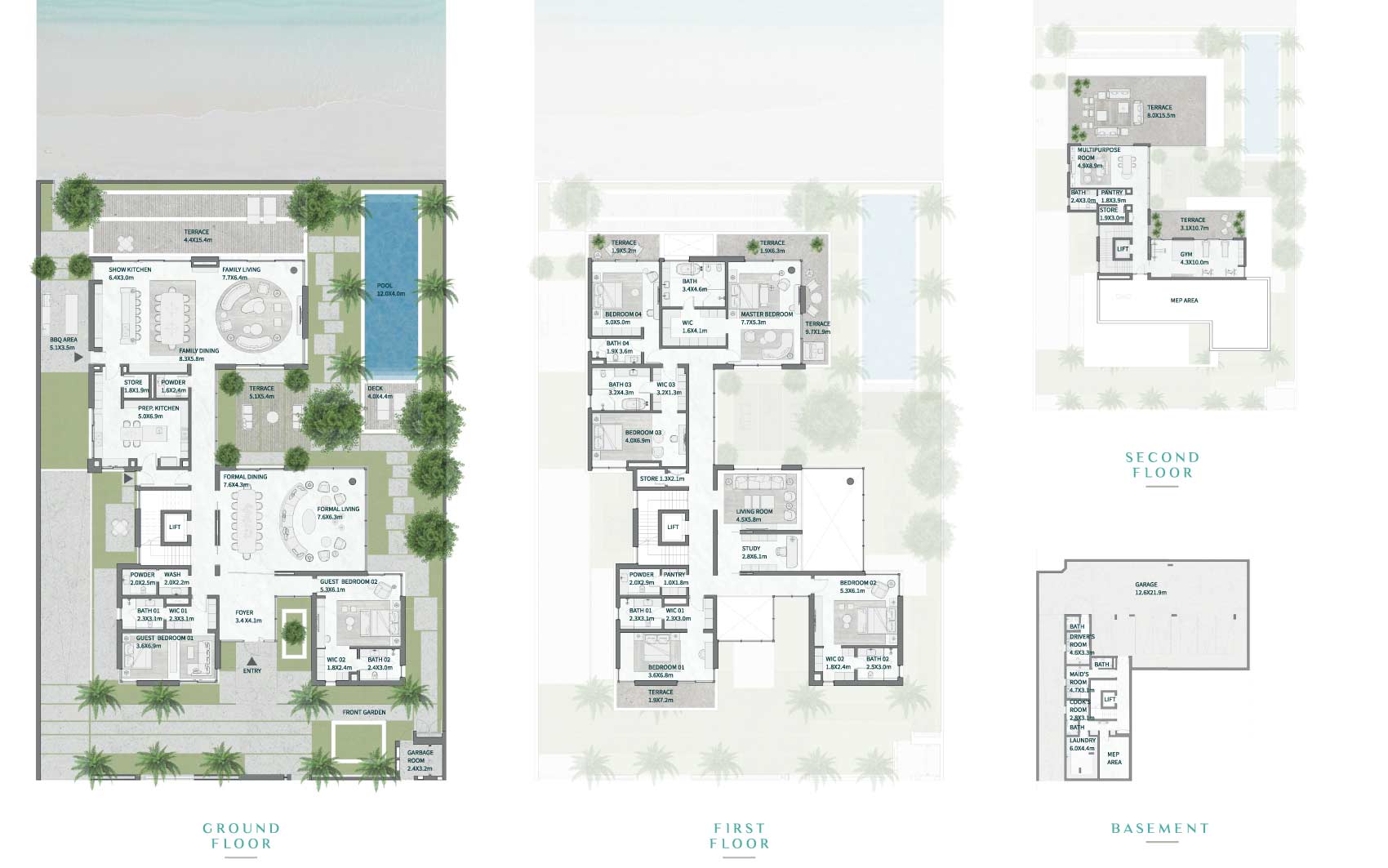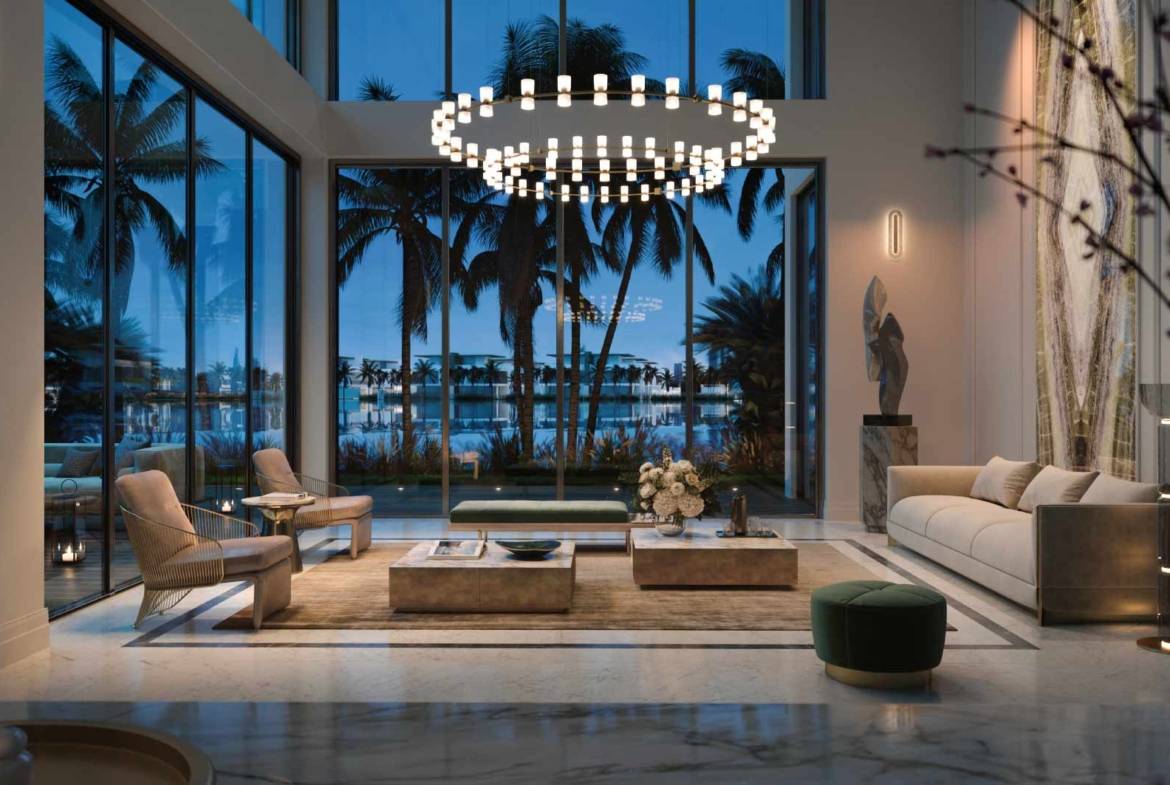 A luxurious 7-bedroom The Island villa at District One West Phase 1, by Nakheel Properties. The villa showcases luxurious materials, plush interiors, beautiful gardens, separate service areas, expansive guest suites, and sparkling private pools, representing the height of sophistication.