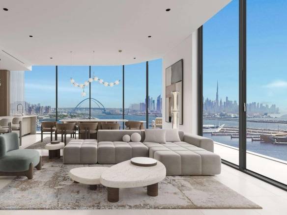 LIV Oceanside, this exclusive development comprises a ground floor, a double-height podium, and 14 residential levels, featuring 106 exquisite homes—from chic 1- to 3-bedroom apartments and spacious 2- to 4-bedroom duplexes, to opulent 4-bedroom penthouses. Every residence embraces its waterfront setting, offering sweeping views of the marina, park, and lively promenade. From sunrise to sunset, enjoy uninterrupted vistas of tranquil waters and the iconic Dubai skyline, creating a living experience defined by serenity and elegance.