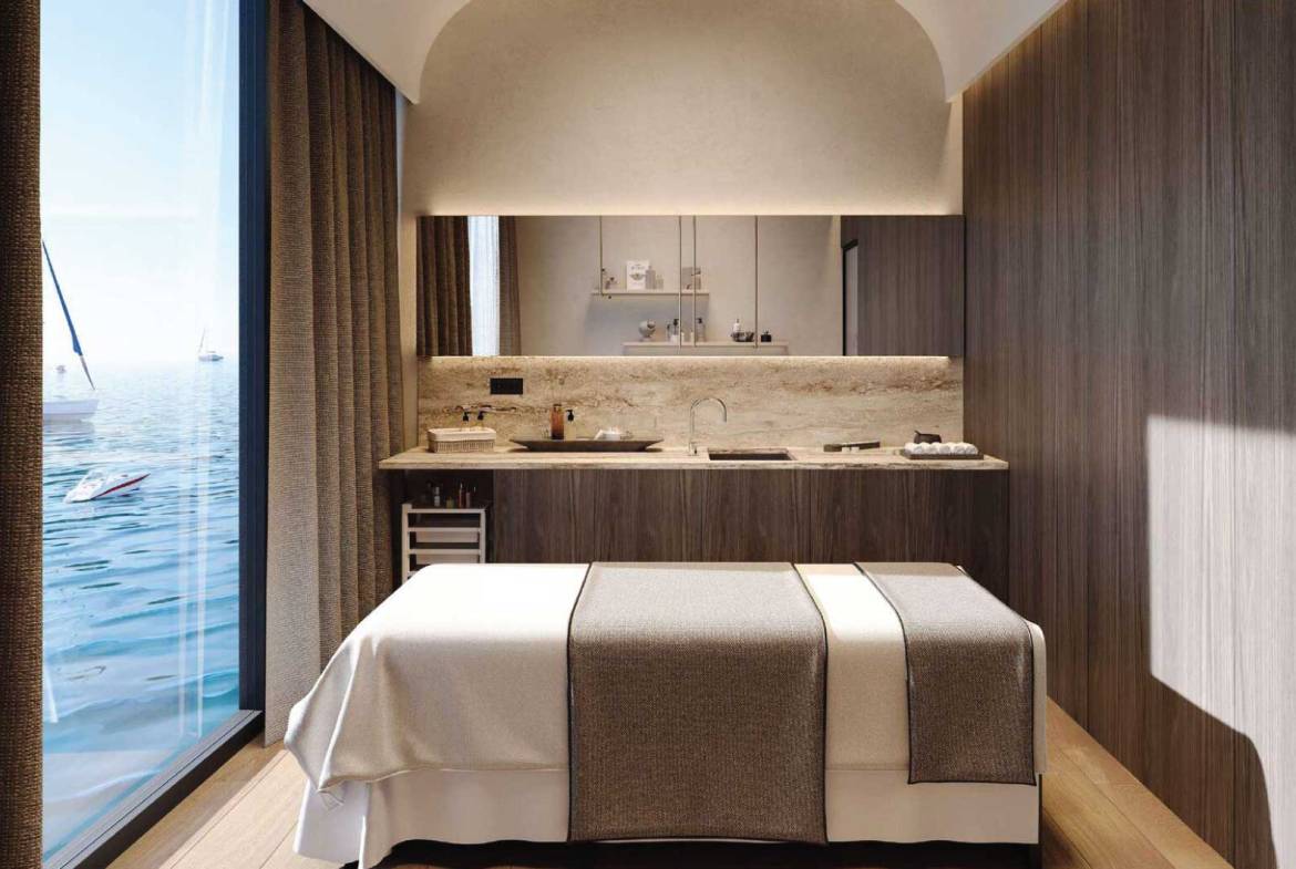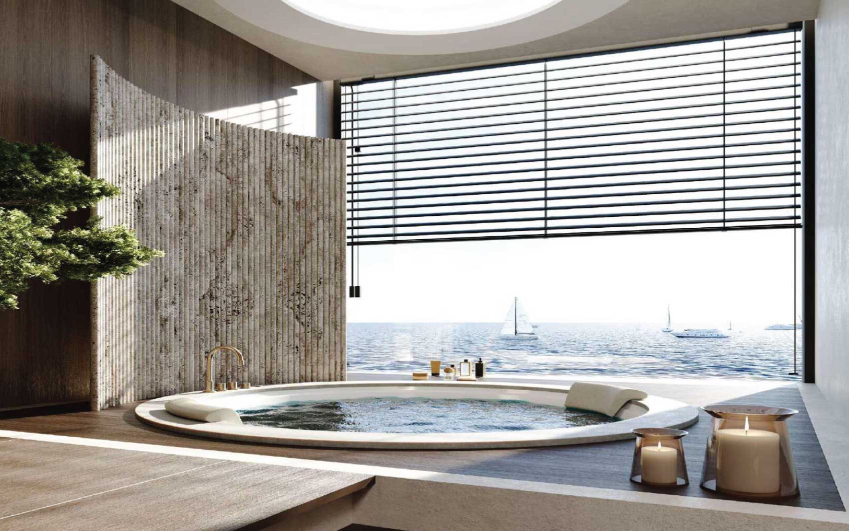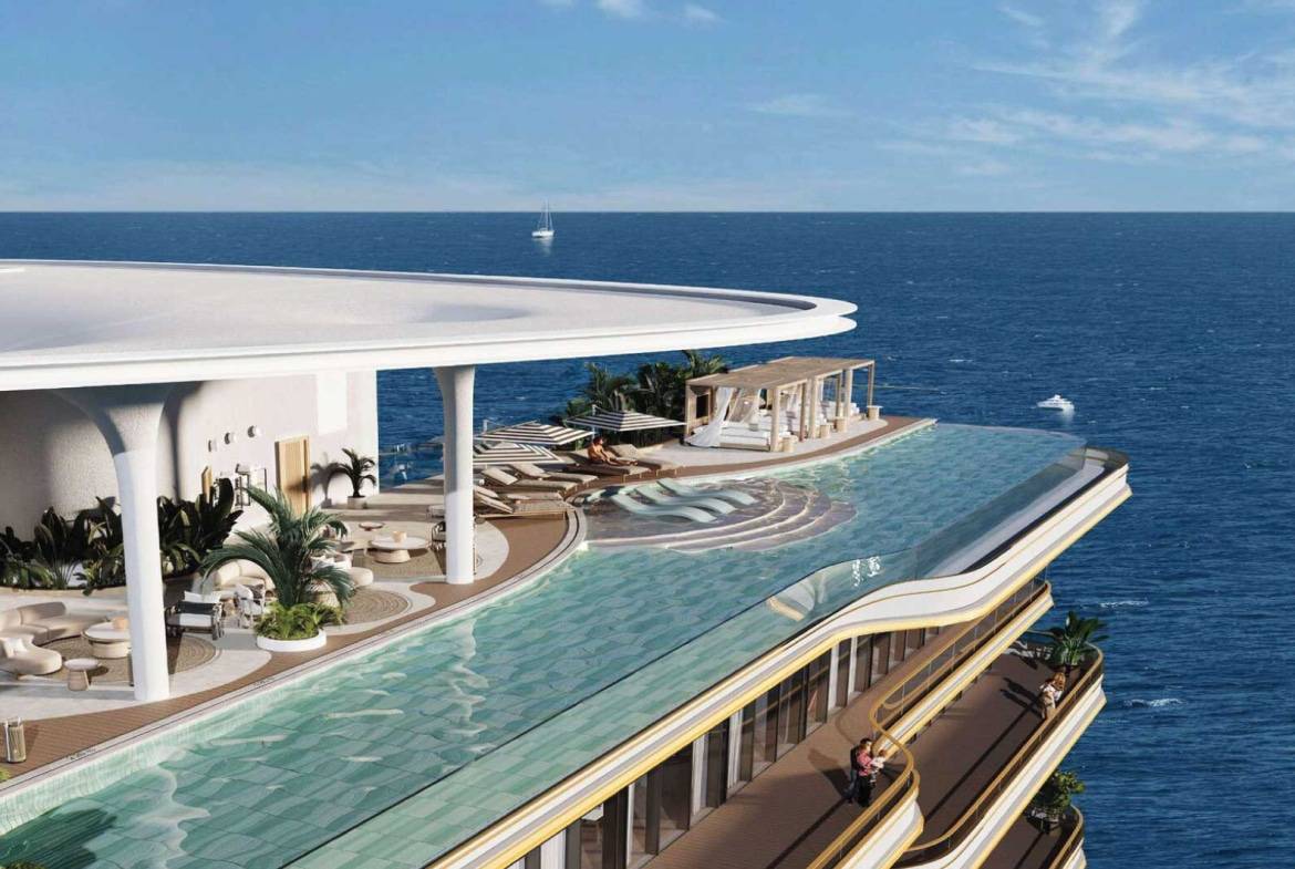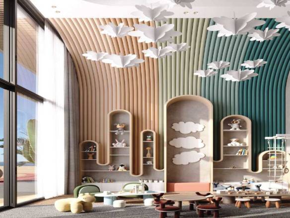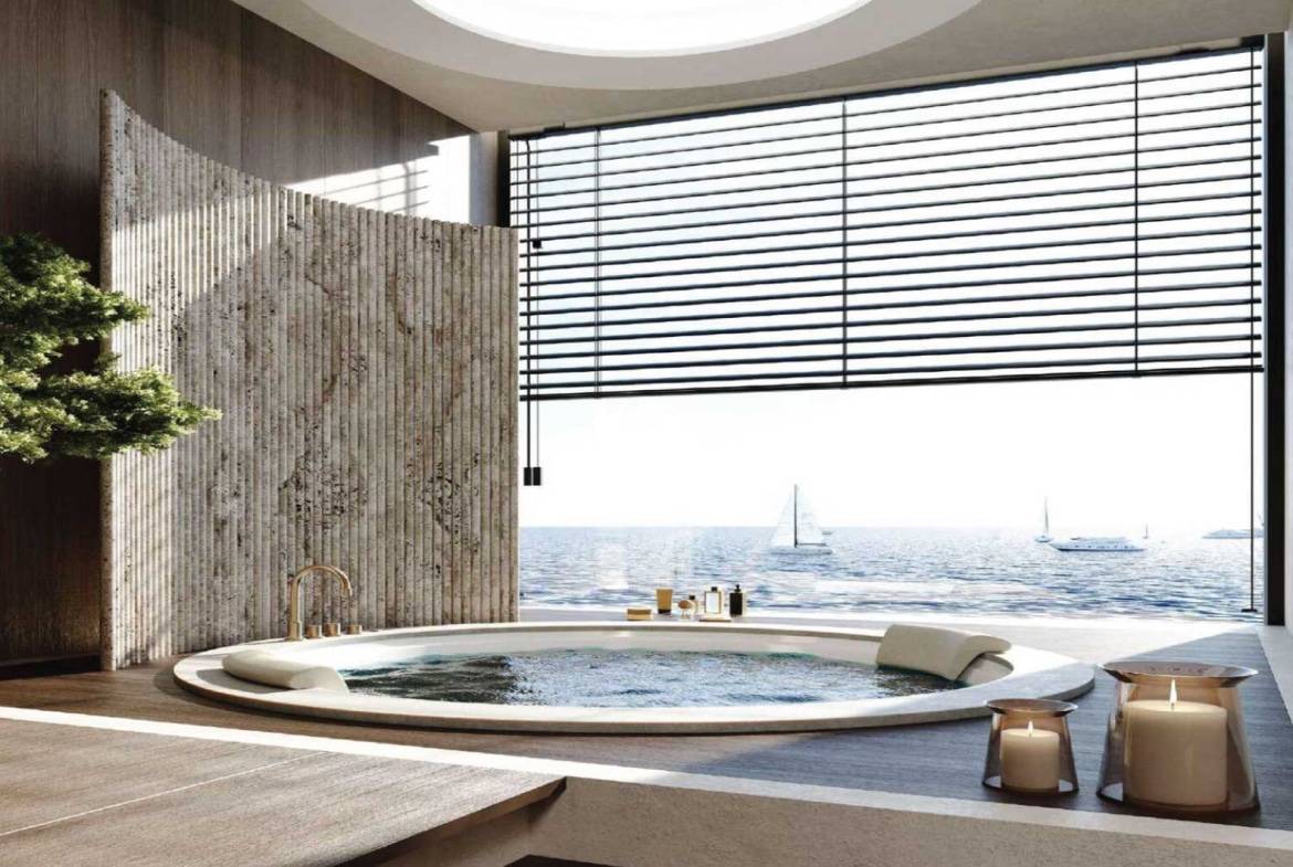 Residents enjoy an exceptional array of amenities, including multiple swimming pools—highlighted by a panoramic infinity pool—state-of-the-art fitness facilities with sea views, yoga studios, saunas, massage and relaxation areas, children’s playgrounds, a library, lounges, conference rooms, and a cinema.