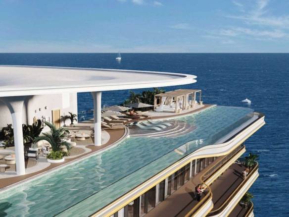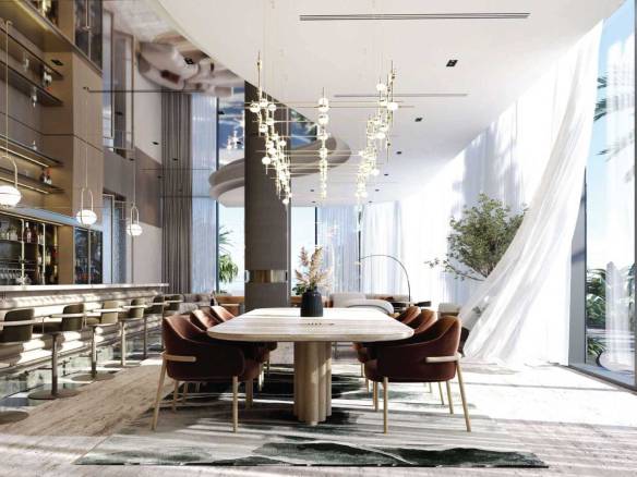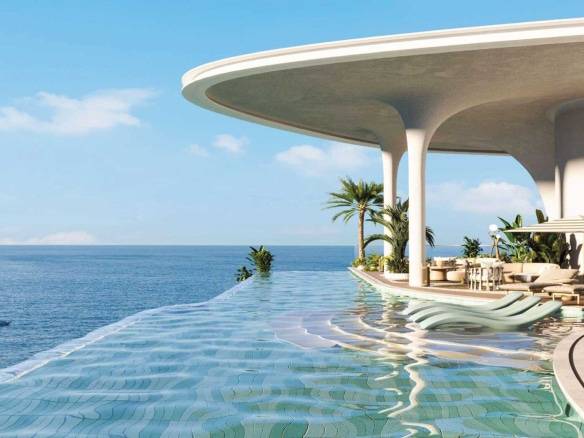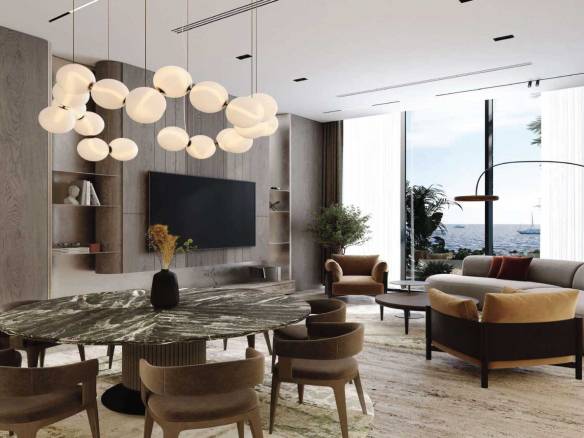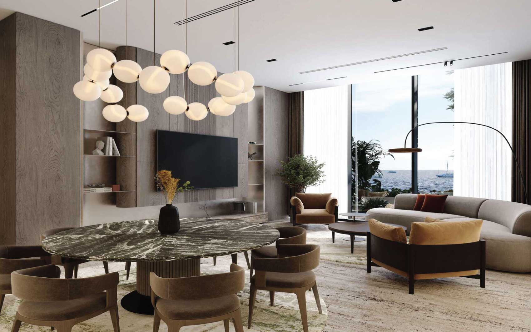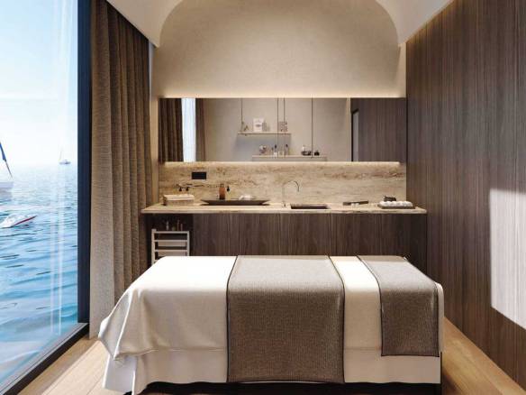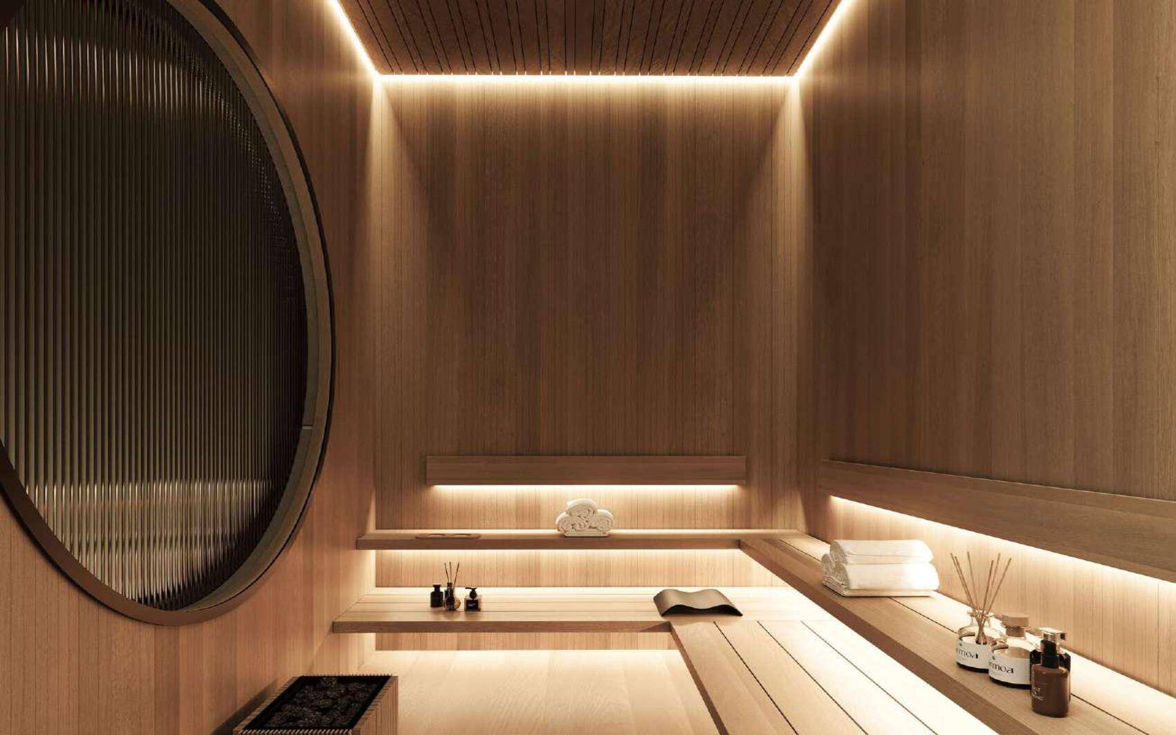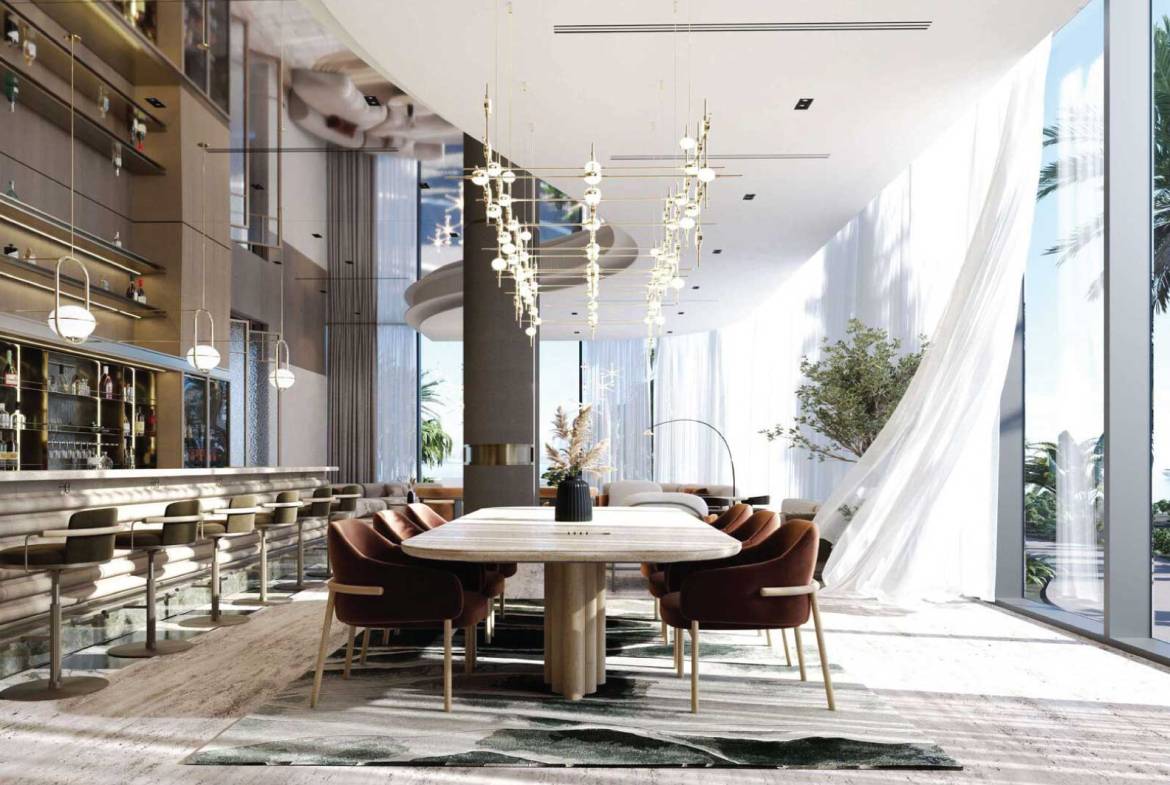 Residents enjoy an exceptional array of amenities, including multiple swimming pools—highlighted by a panoramic infinity pool—state-of-the-art fitness facilities with sea views, yoga studios, saunas, massage and relaxation areas, children’s playgrounds, a library, lounges, conference rooms, and a cinema.