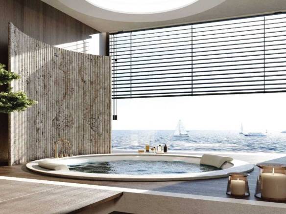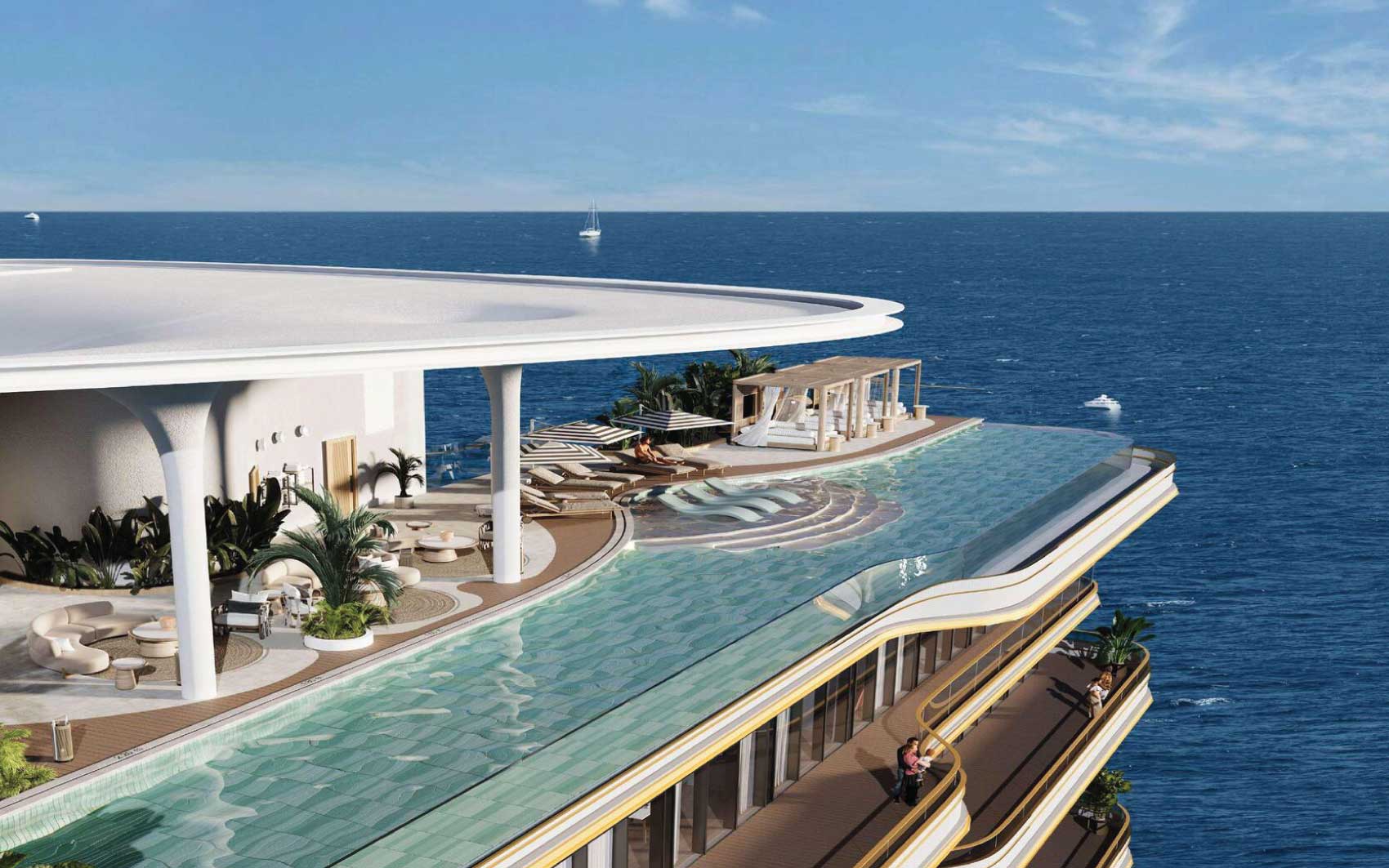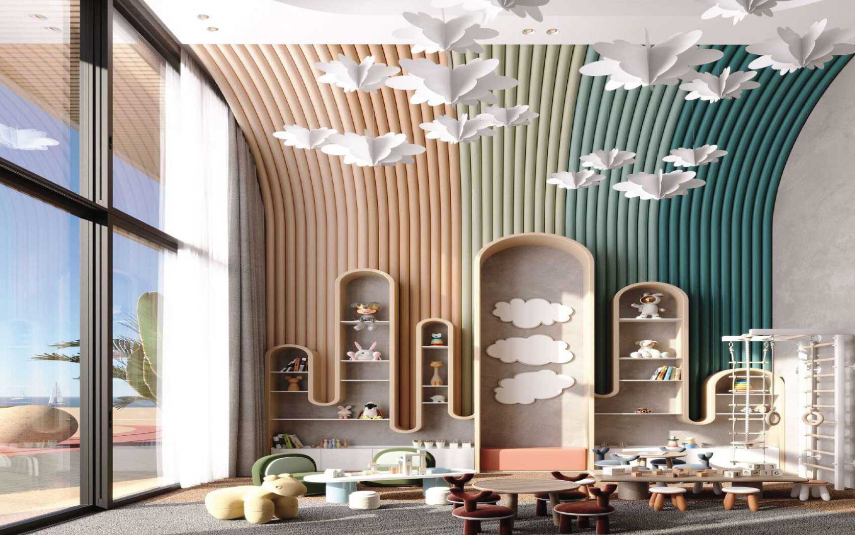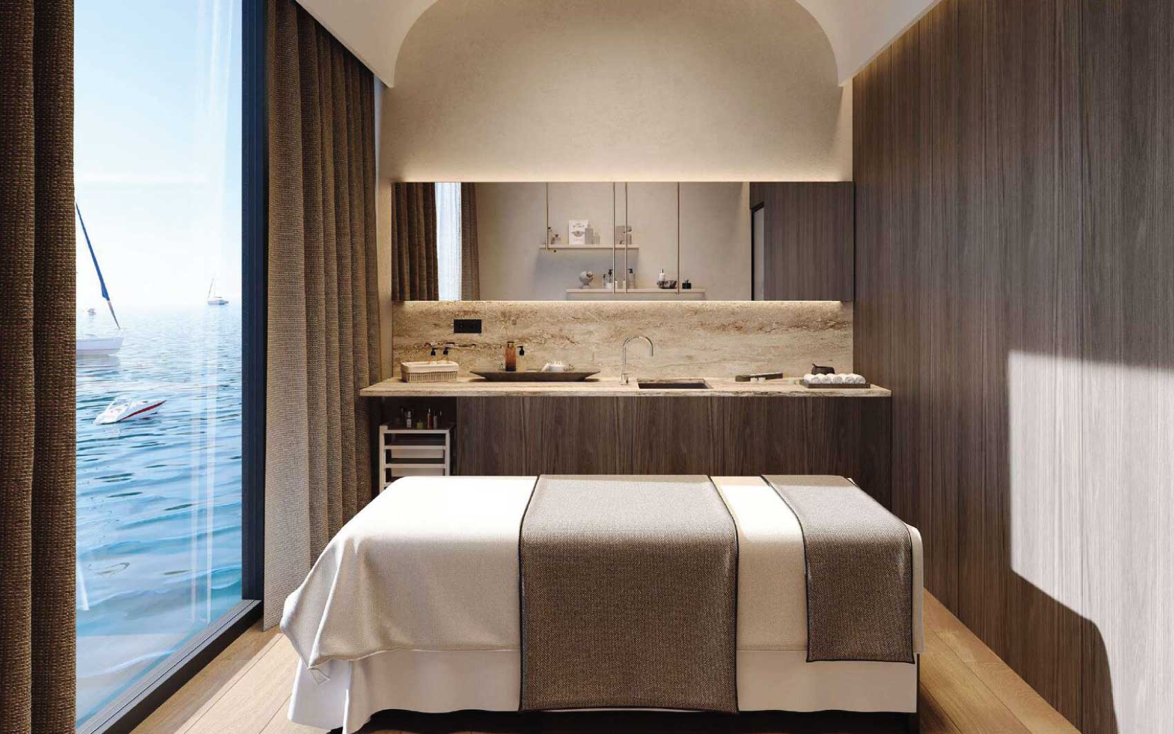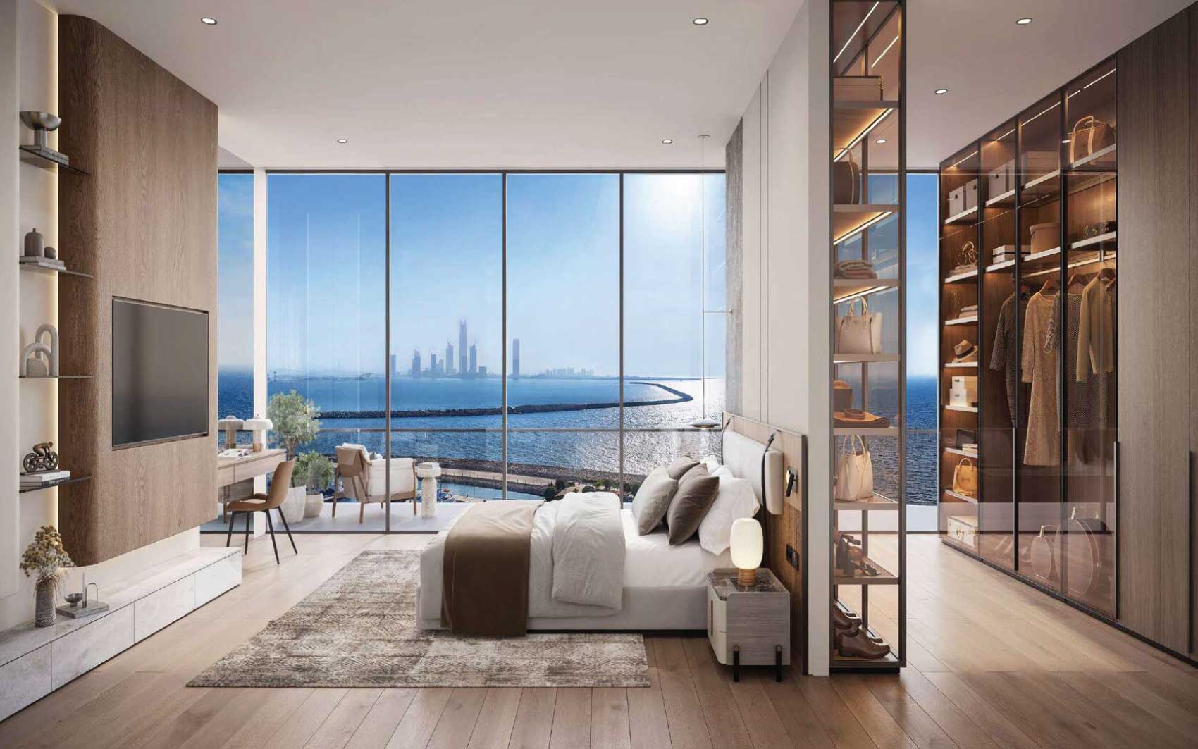 Residents enjoy an exceptional array of amenities, including multiple swimming pools—highlighted by a panoramic infinity pool—state-of-the-art fitness facilities with sea views, yoga studios, saunas, massage and relaxation areas, children’s playgrounds, a library, lounges, conference rooms, and a cinema.