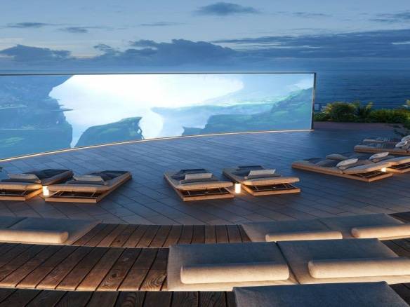 The complex features an extensive array of wellness amenities, including a sauna, Jacuzzi, and a dedicated yoga area. For leisure, residents can enjoy an outdoor cinema, children’s playground, swimming pool, BBQ area, mini golf course, and a Sky Lounge.