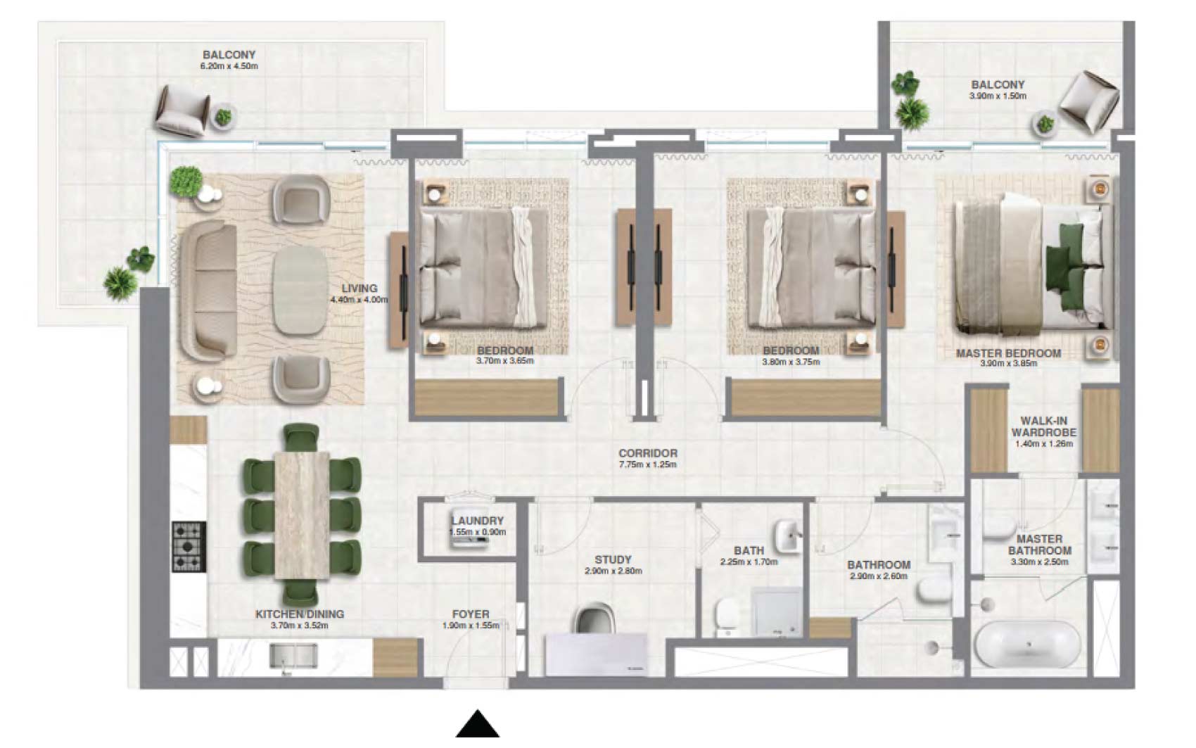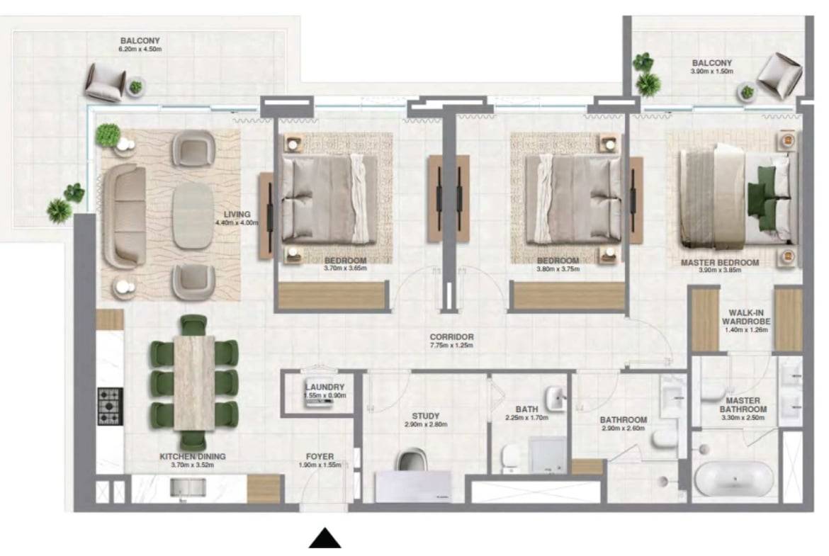 Welcome to a three-bedroom apartment at Emaar Golf Verge Residences, located in the Emaar South district. Golf Verge offers stunning views of lush green fairways, creating a setting that inspires and uplifts. Expansive glass windows fill each home with natural light and panoramic scenery, inviting residents to relax, recharge, and embrace limitless possibilities.