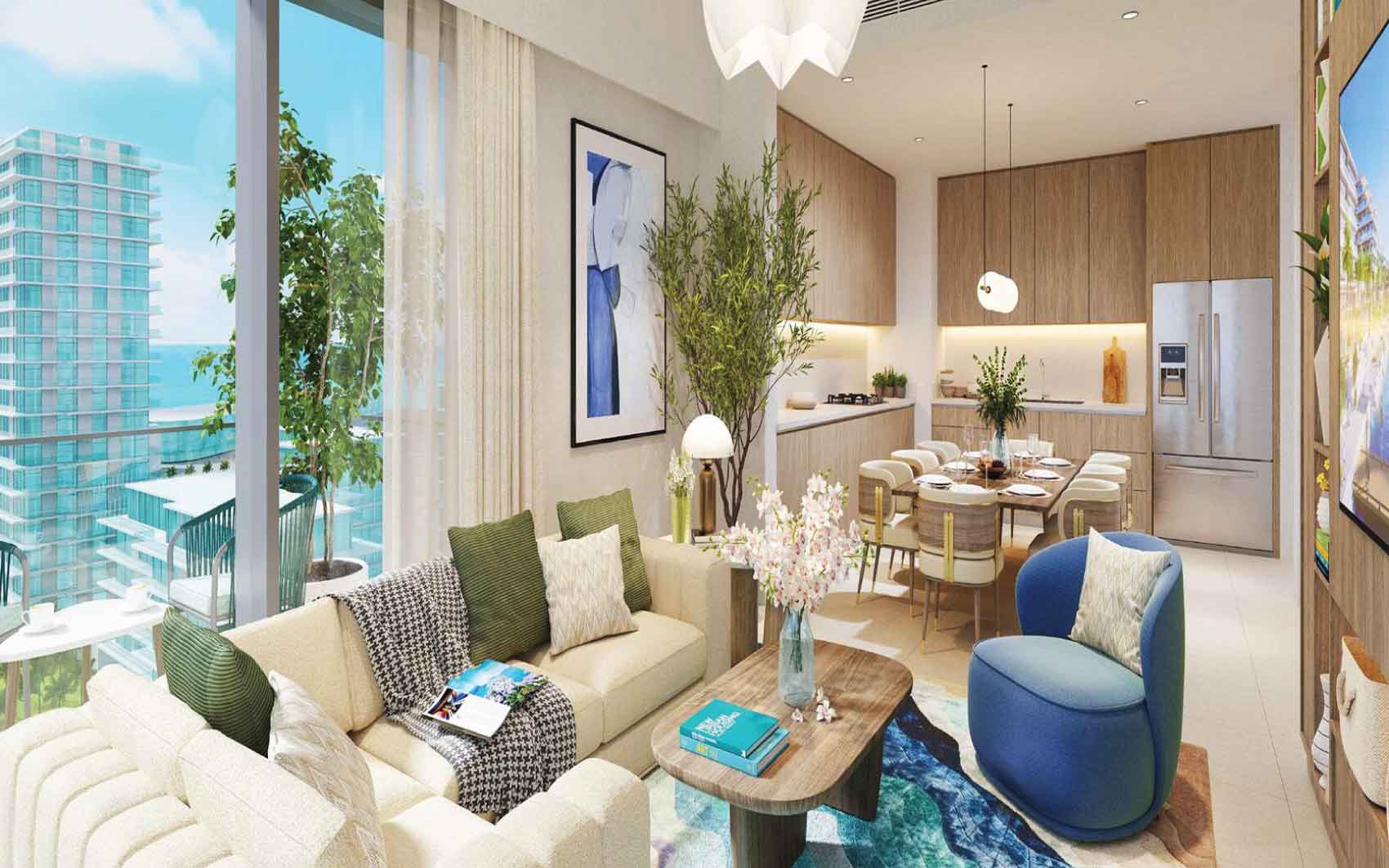 Every residence at Seascape is a statement of contemporary artistry, where meticulous craftsmanship meets refined design. Choose from spacious one-, two-, and three-bedroom apartments, thoughtfully curated with open-plan layouts that enhance light, flow, and functionality. This exclusive four-building enclave enjoys a prime position beside the vibrant community park and the iconic canal pool, offering direct access to a beautifully landscaped promenade alive with energy and uninterrupted views of the marina and the dazzling Dubai skyline.