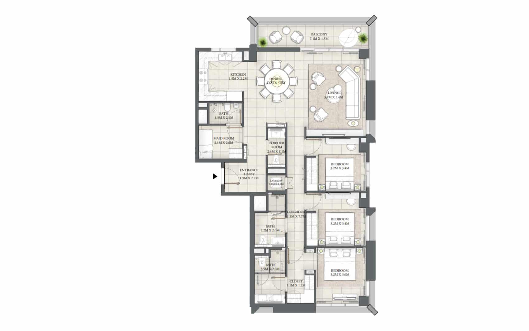 Experience the three-bedroom apartment Exclusive Lifestyle at EMAAR Mangrove, where tranquil waterfront views create an unparalleled lifestyle. Mangrove is a stylish collection of 1 to 3-bedroom apartments by EMAAR, perfectly situated beside a scenic park in the heart of Dubai Creek Harbour. The complex features two buildings, each with a ground floor and a mezzanine. One building offers 7 residential floors, while the other comprises 8.