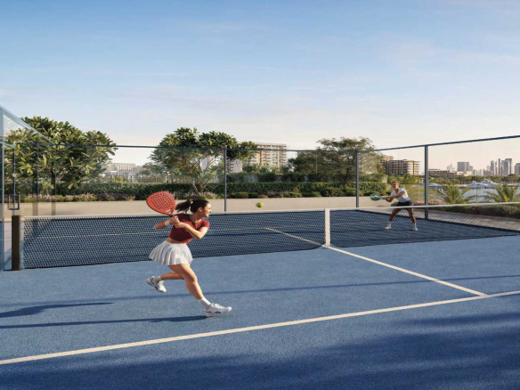 Residents enjoy an exceptional array of amenities, including adult and children’s swimming pools, an outdoor gym, a dedicated yoga area, a padel court, a children’s playground, versatile event spaces, and a stylish BBQ area—perfectly crafted for both relaxation and active living.