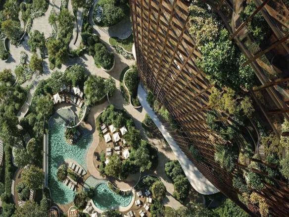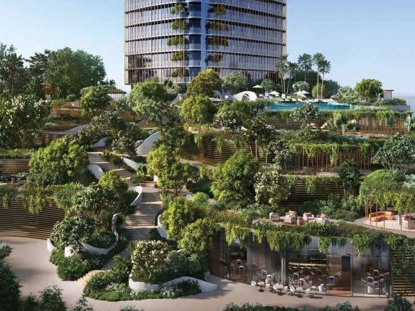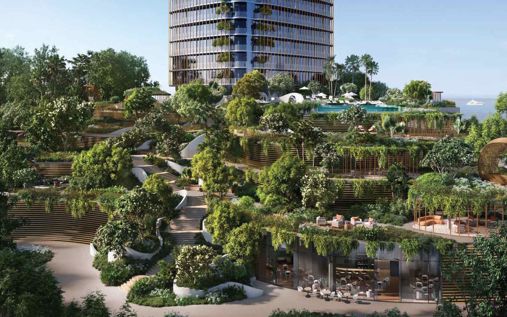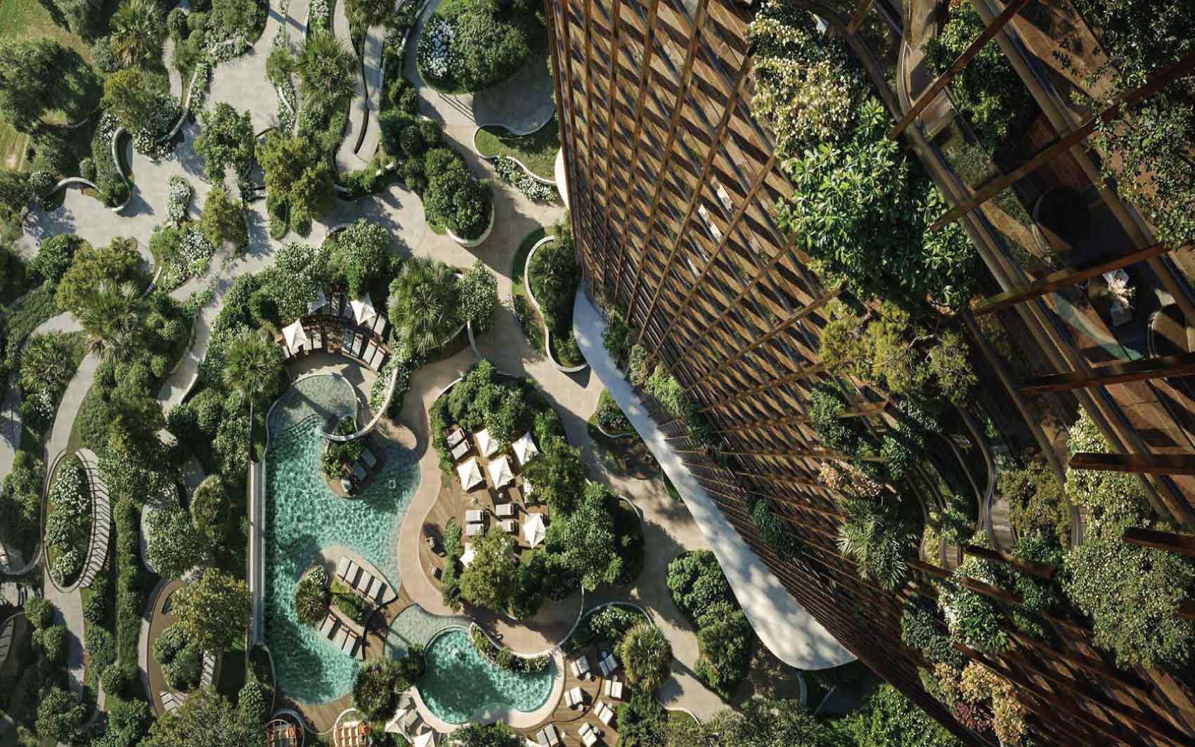 Kanyon features a ground floor, three podium levels, and 45 residential floors, creating a graceful vertical composition that houses 411 beautifully appointed residences. Each residence extends onto generous terraces, establishing a seamless connection with the sea, the city, and the future forest. Sunlit interiors, adorned in natural hues, blend wood, stone, and glass to create an atmosphere of understated luxury. A verdant ribbon sweeps up the glowing façade from podium to summit, creating a living green spine that animates the building’s design.