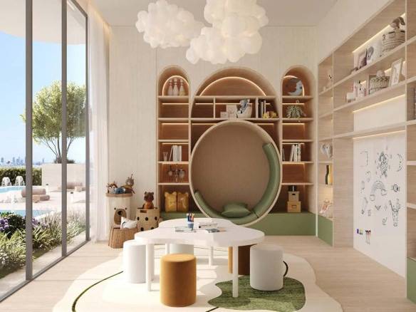 LIV Maritime W/Private Garden provides uninterrupted waterfront views from every apartment, seamlessly blending contemporary urban elegance with the natural surroundings. The generously sized bedrooms feature impressive walk-in closets and inviting sitting areas, enhanced by natural wood flooring and bespoke cabinetry. This development features a striking tower with a ground floor, five podium levels, an amenity floor, and 42 residential floors. It offers a serene environment for relaxation, inspiration, and reflection—all set against the vibrant backdrop of Dubai’s dazzling skyline.