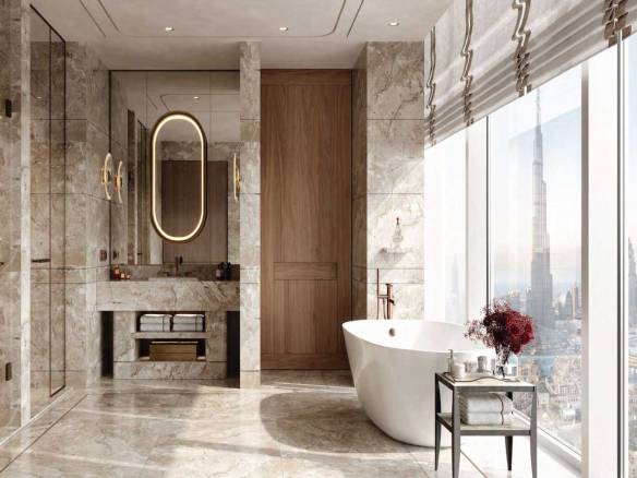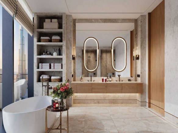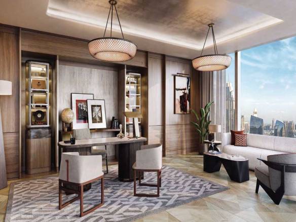 Residents enjoy exclusive access to shared amenities spanning both towers, including two elegant lobbies, a lounge, an infinity pool, yoga and fitness studios, a spa, children’s play area, a fine dining restaurant, a patisserie, meeting rooms, a prayer room, and a private residents’ salon.