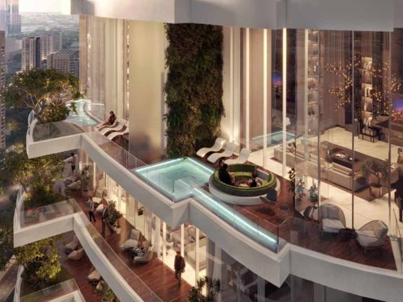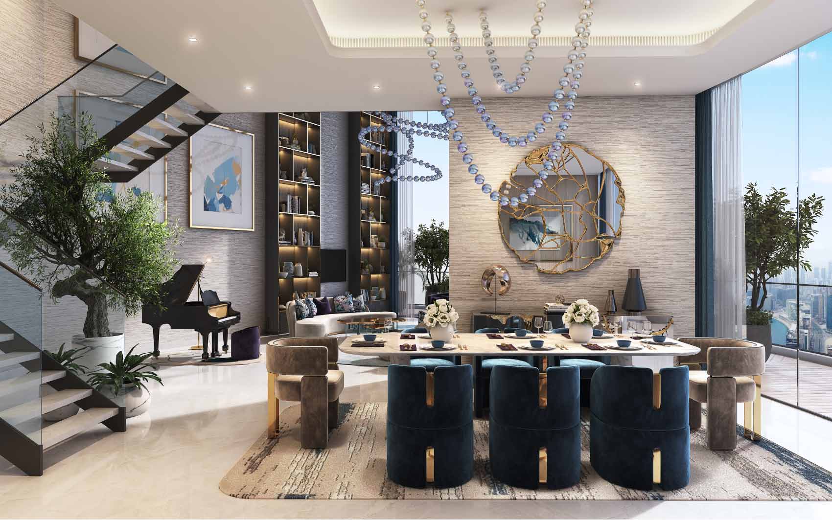 Discover a 4-bedroom luxury duplex apartment at Canal Heights, Business Bay by DAMAC properties. This ultra-luxury apartment boasts a maid’s room, show kitchen, dressing rooms, and a private swimming pool with a spacious terrace, offering breathtaking views of the canal.