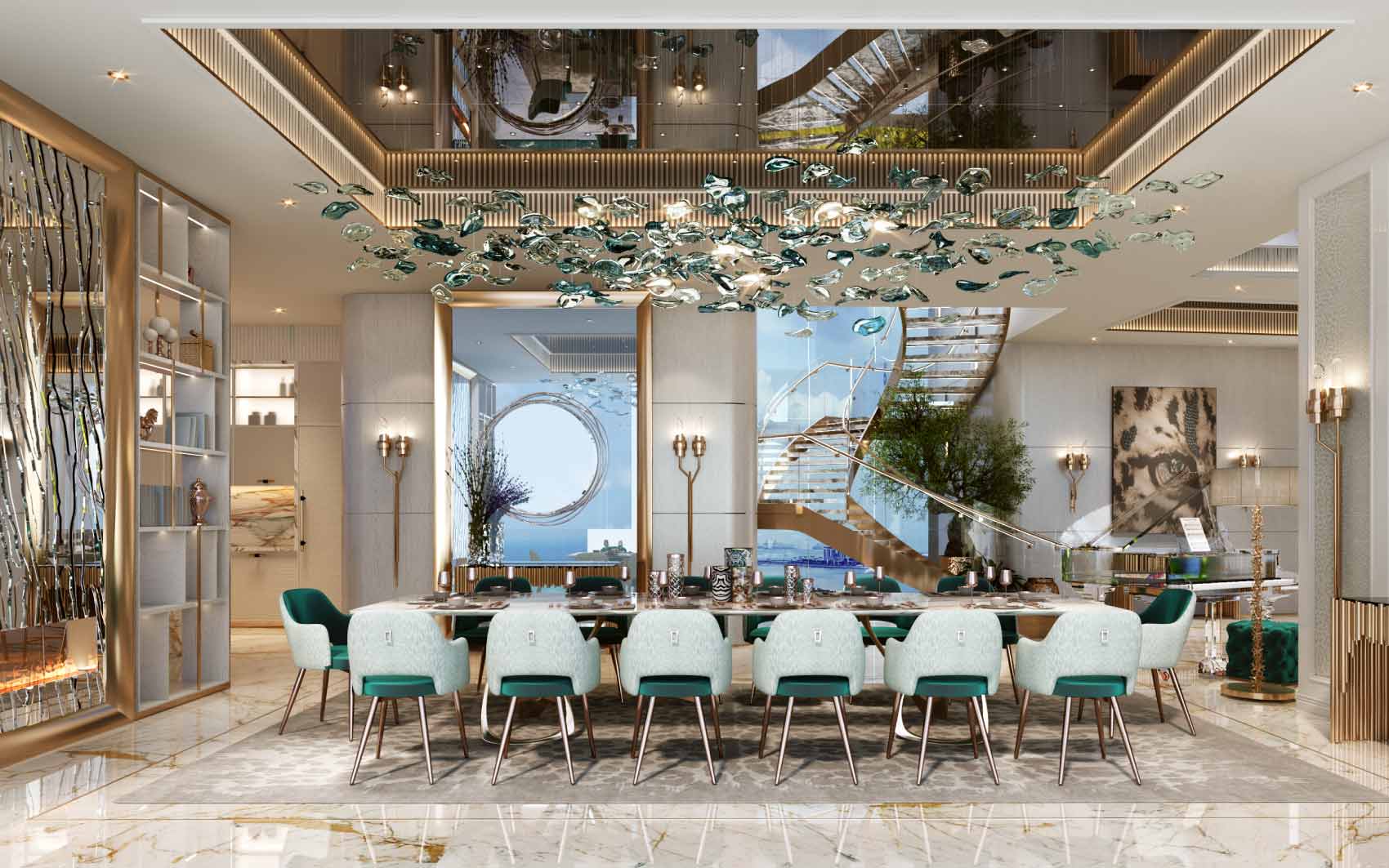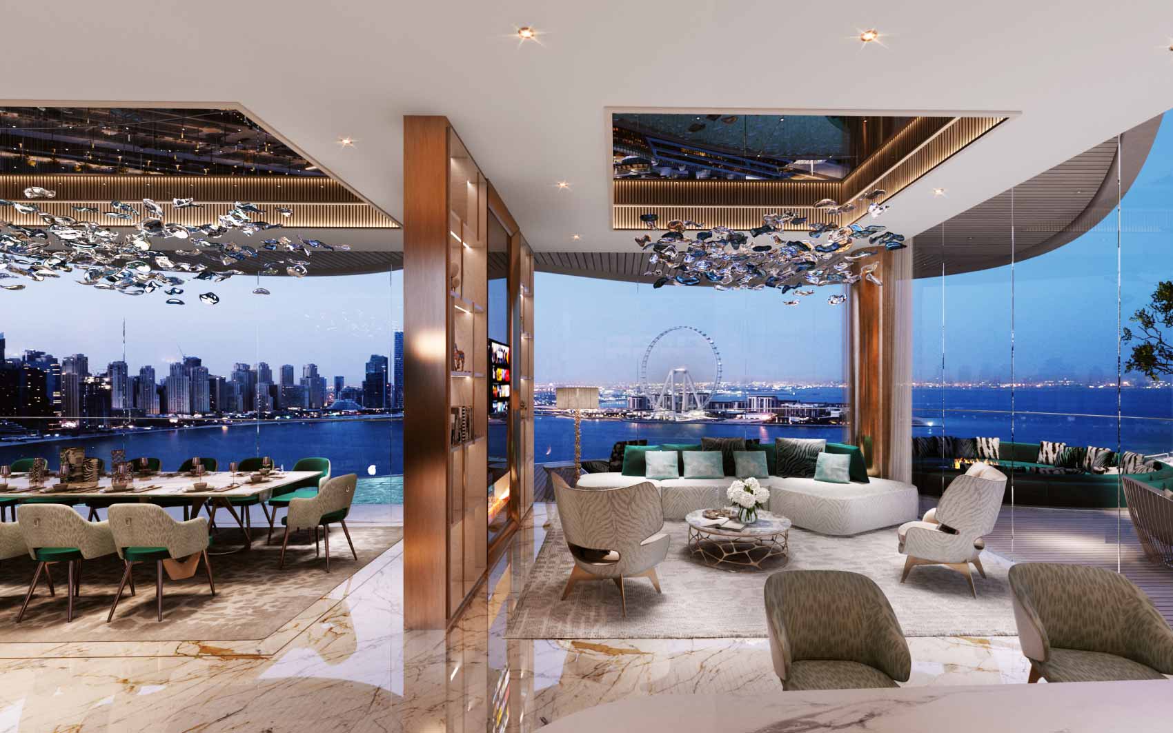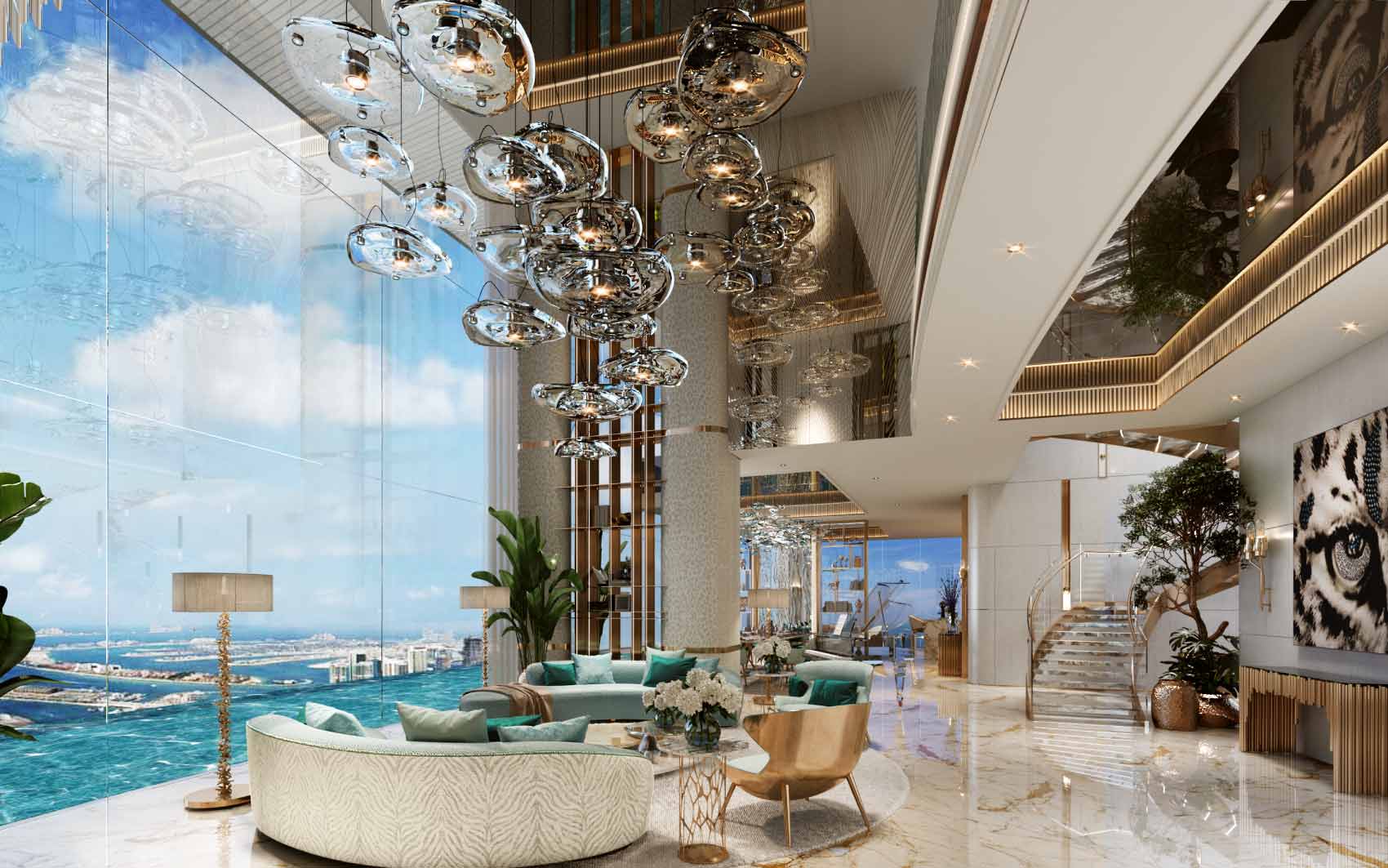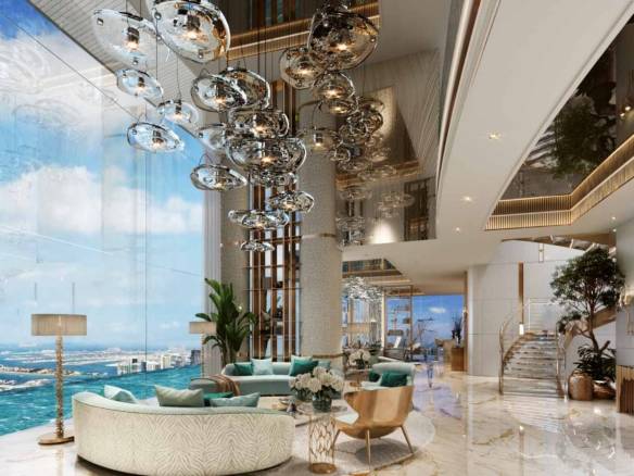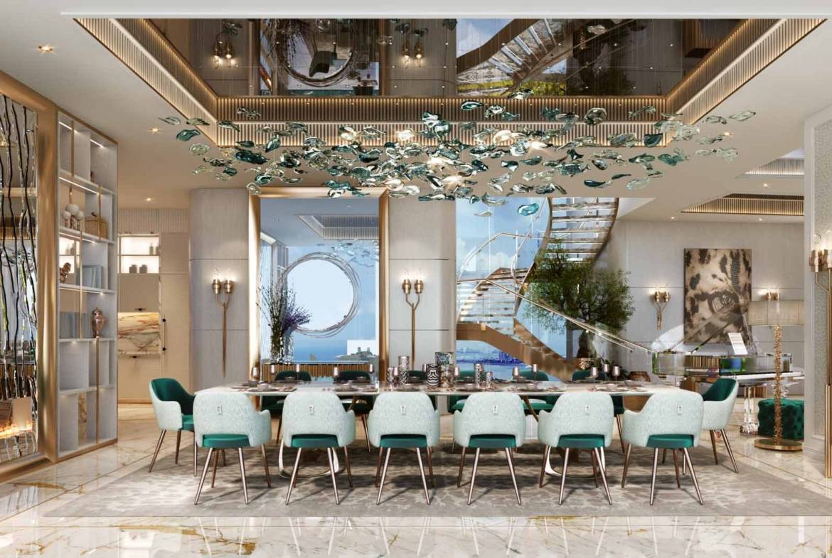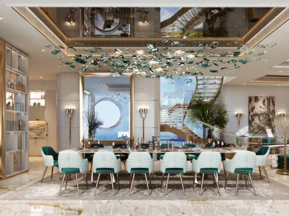 DAMAC Bay by Cavalli, a distinguished project by DAMAC Properties, presents super luxurious apartments and duplexes with breathtaking sea views. Branded by Cavalli, the development includes three interconnected towers with exclusive amenities. This waterfront super luxury duplex offers a unique living experience, ideal for those who appreciate the blue sky, sea, sunsets, sunrises, and the stunning city lights at night. Such deluxe living fits perfectly with the vision of a Luxury Duplex By Cavalli.