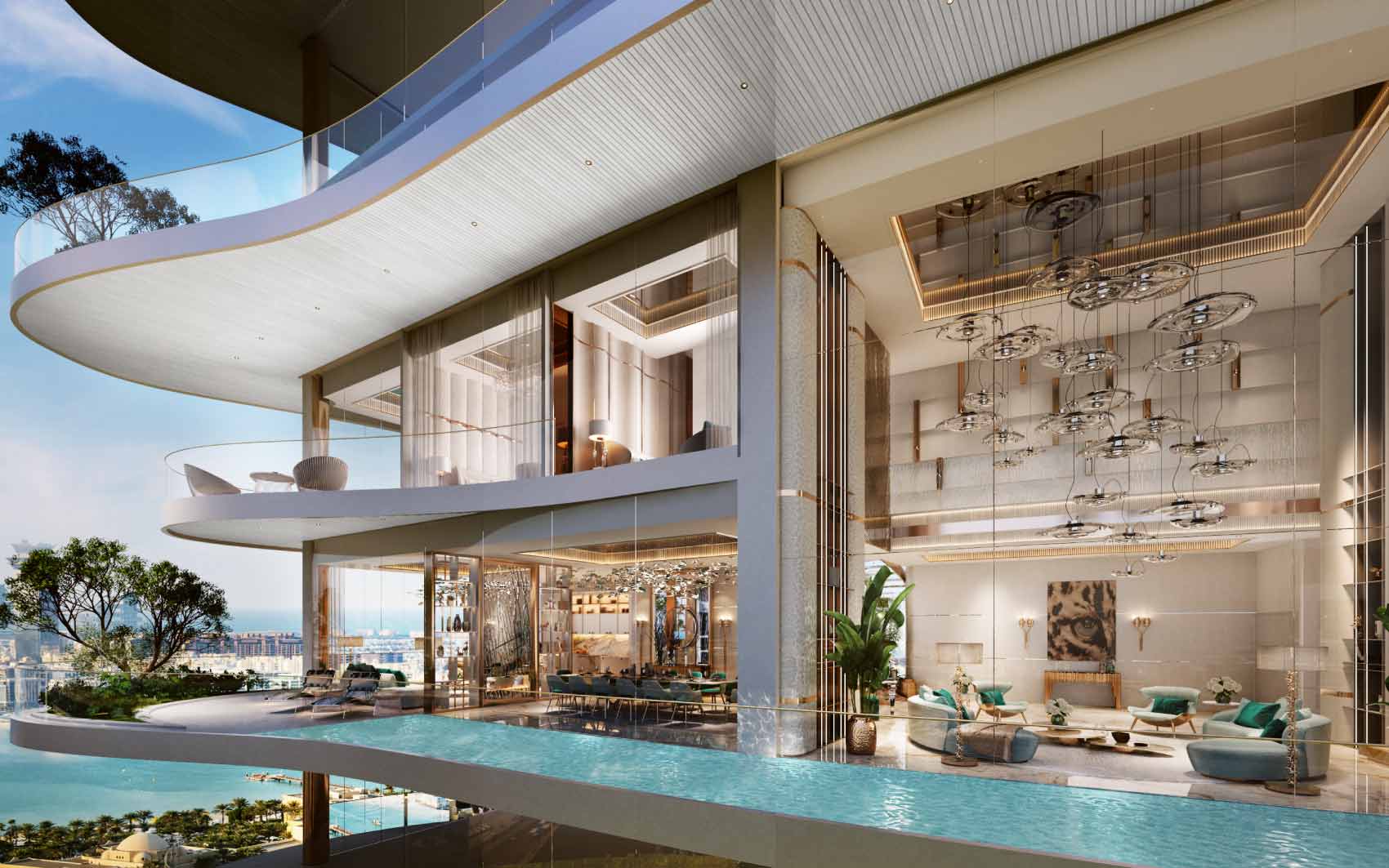 Discover a 4-bedroom super luxury duplex at DAMAC Bay by Cavalli. The apartment features large terraces, a private pool, and a stunning 42-storey design that combines elegance with maritime charm. With sleek exteriors and nautical-themed interiors by Cavalli, DAMAC Bay offers a range of unique and extravagant amenities. Experience the epitome of luxury duplex living by Cavalli.