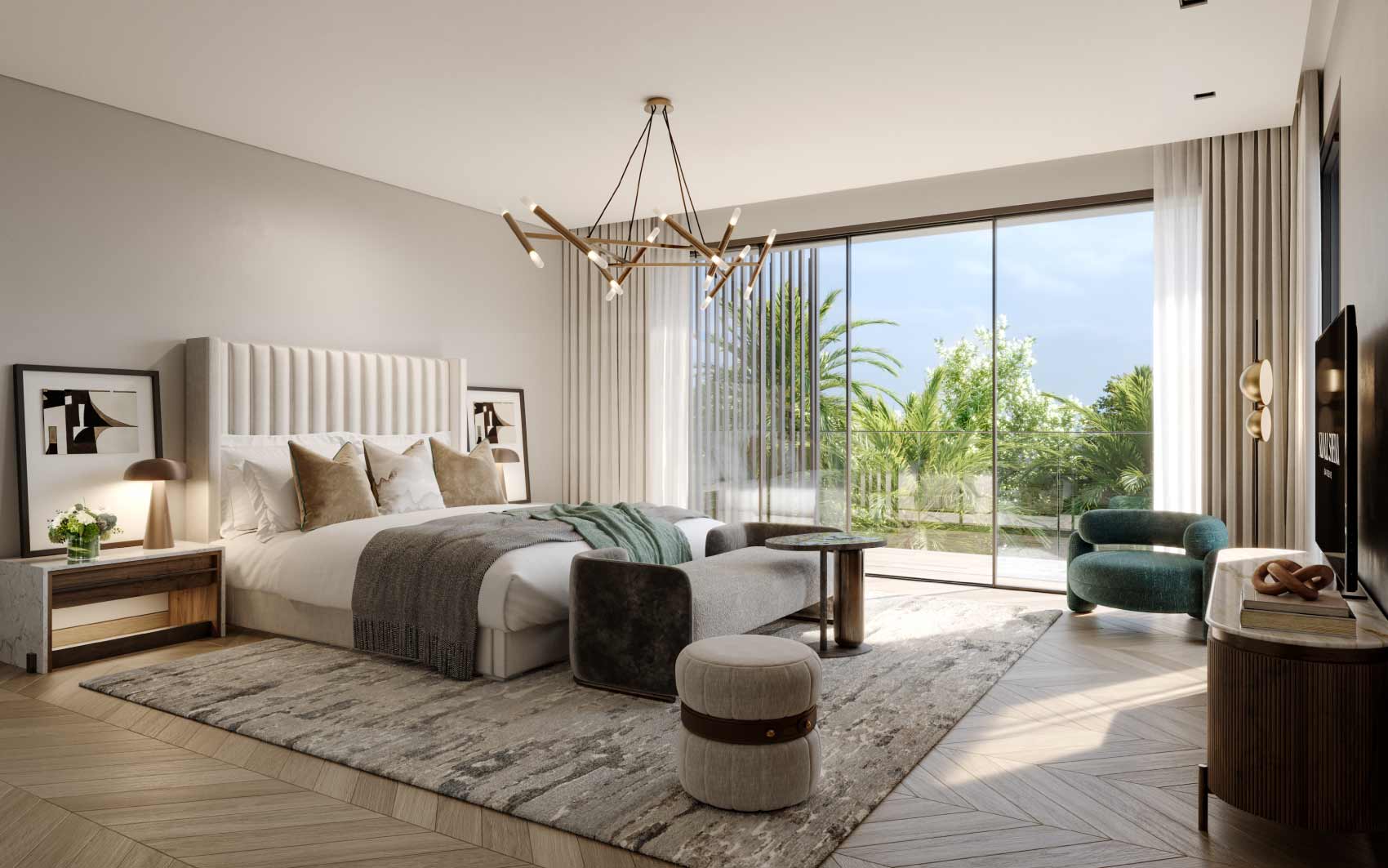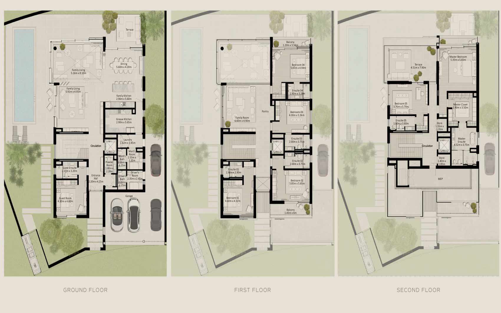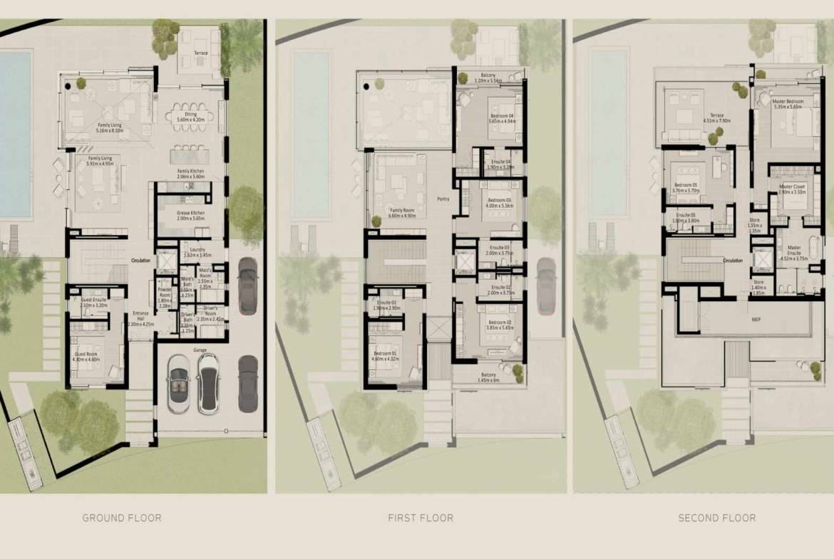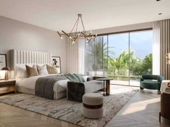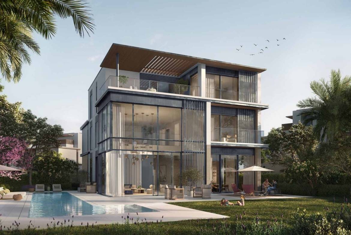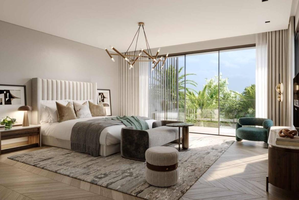 Discover a 7-bedroom standalone villa at Nad Al Sheba Gardens by Meraas Properties. This luxury villa features a private swimming pool, private garden, guest ensuite room, a maid’s room, a driver’s room, back kitchen and show kitchen. The bedrooms are serene retreats with warm timber-look tiles and light grey walls, blending nature into everyday life.