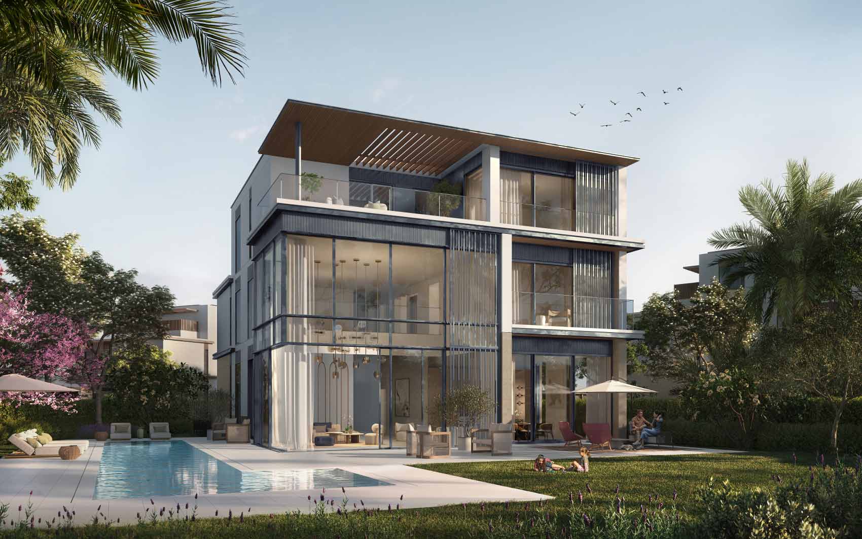 A haven for those driven by ambition and purpose, tailored to modern lifestyles. Its new districts reflect a commitment to luxury living. The modern villas, featuring distinctive bronze and grey screens, offer both stylish design and premium views of pocket parks, all while ensuring residents’ privacy.