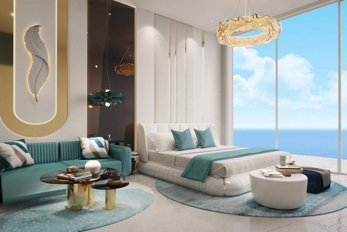Experience a 1-bedroom presidential suite with a pool and a study room at Danube Oceanz Tower 3 in Dubai Maritime City. This architectural marvel offers stunning views and exclusive waterfront living, moreover, blending elegance with maritime charm.