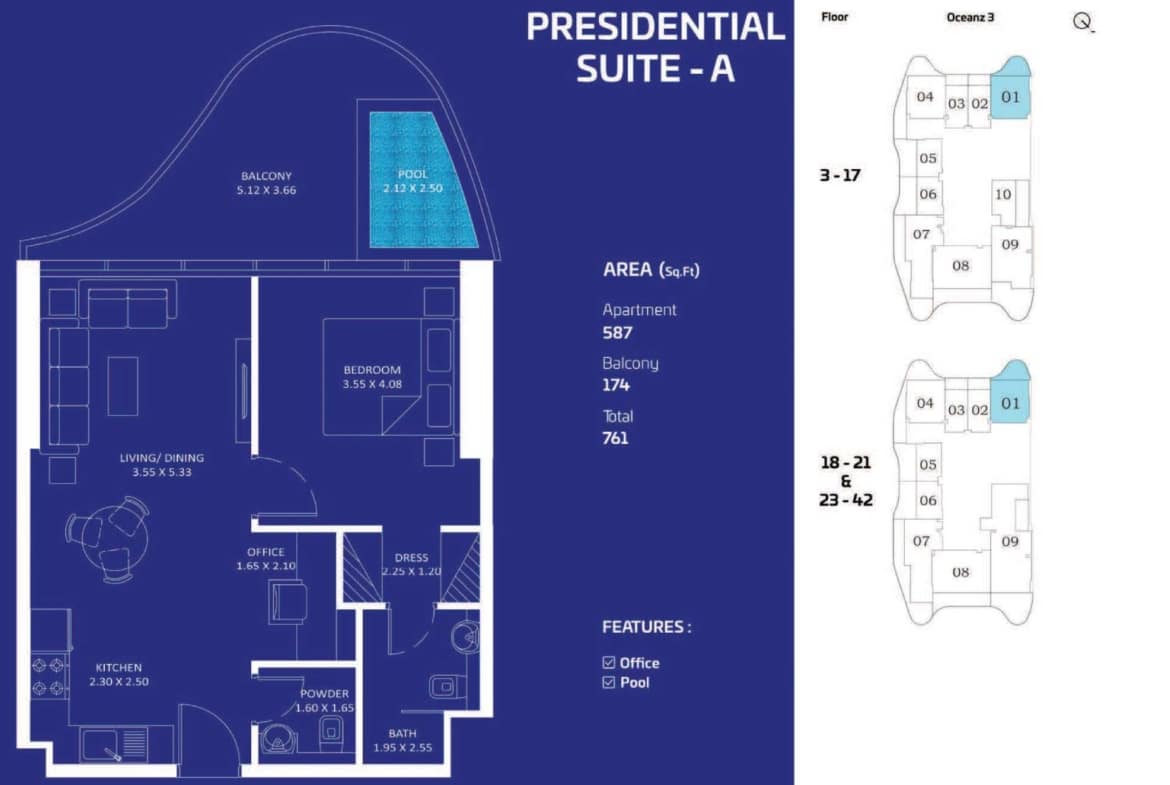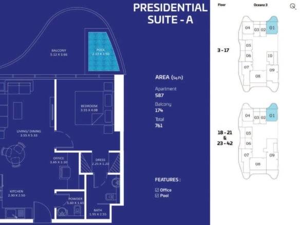 Features and Amenities: OCEANZ Presidential Suite