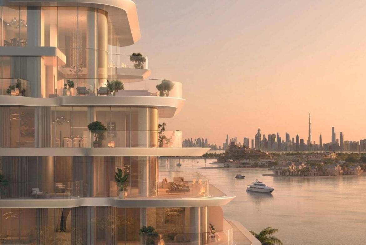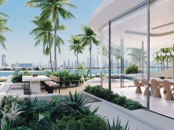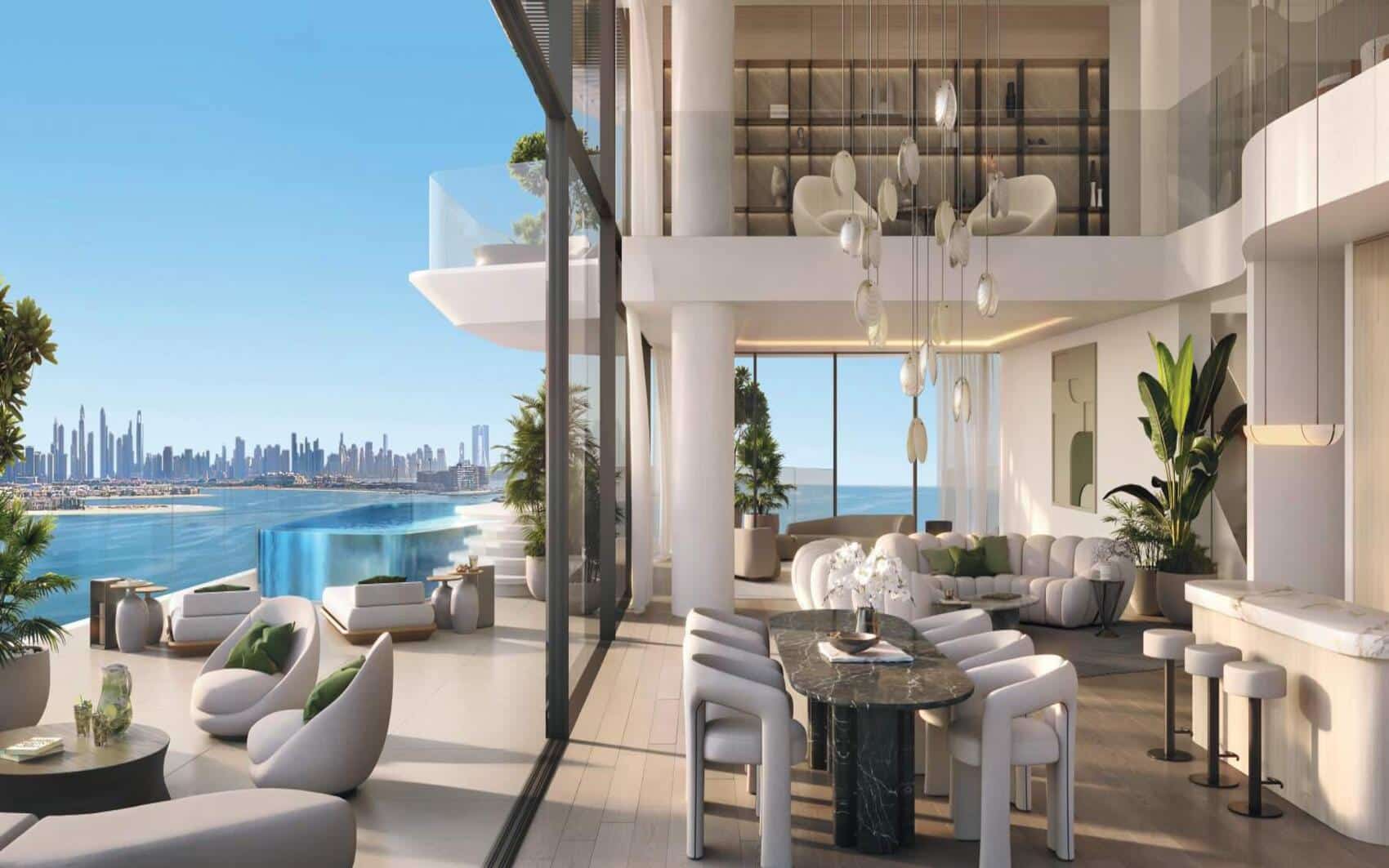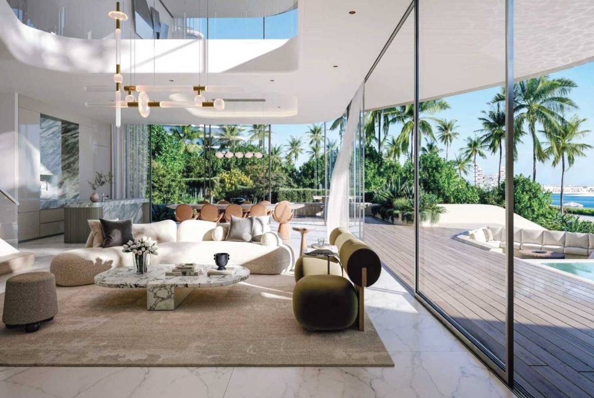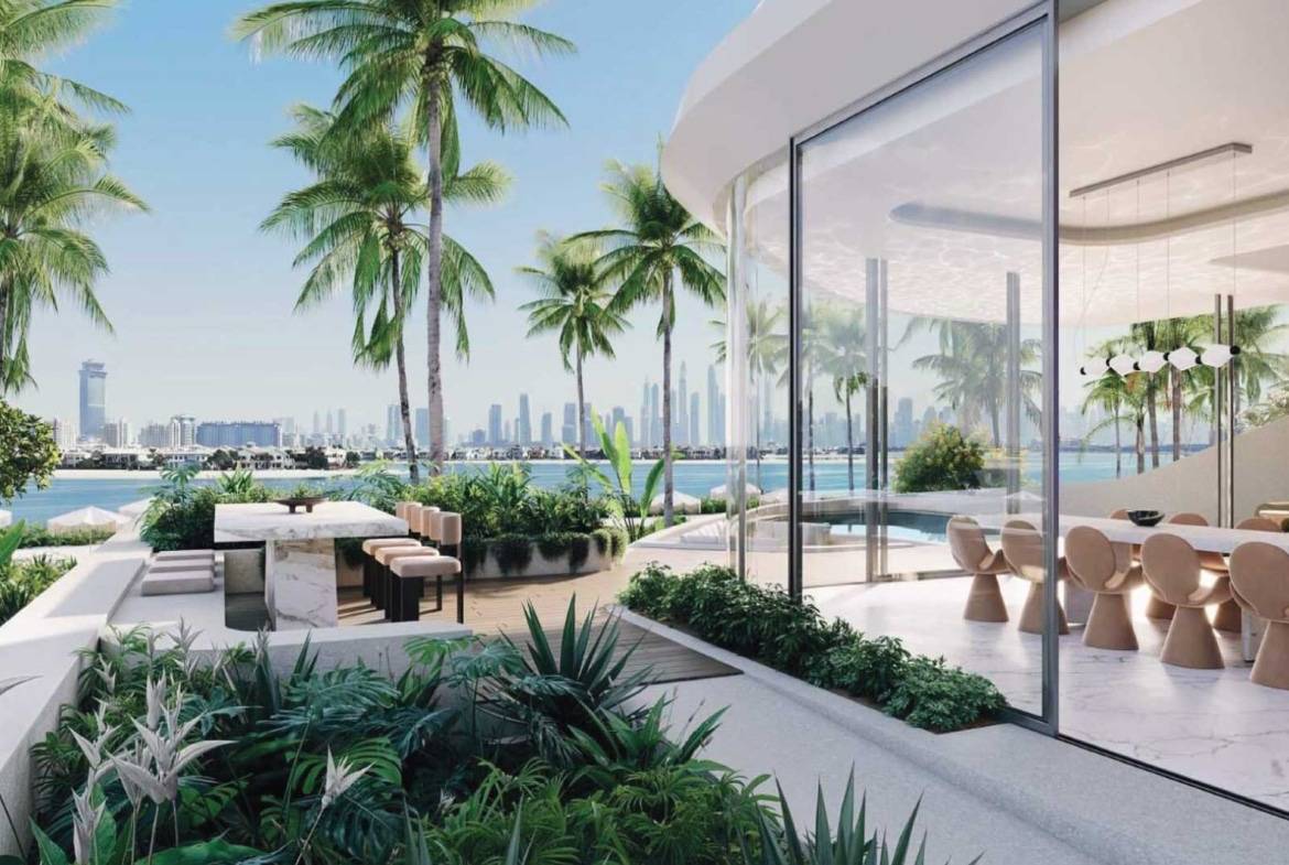 Uncover the charm of a six-bedroom ultra-luxury mansion at “PASSO” BEYOND by OMNIYAT, nestled in the iconic Palm Jumeirah, Dubai. The project showcases a contemporary architectural style, featuring dynamic façades and fluid lines that highlight its elegance while blending seamlessly with the surrounding seaside landscape.