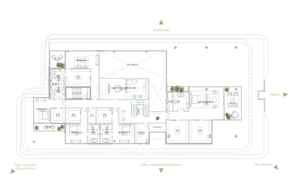 Reveal the majesty of a six-bedroom Royal Sky Mansion at Serenia, set within the elite surroundings of Palm Jumeirah, Dubai. The development features four elegant multi-storey buildings, presenting a curated collection of premium residences — from stylish 1- to 4-bedroom apartments to magnificent duplex penthouses offering 3 to 6 bedrooms.