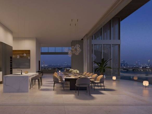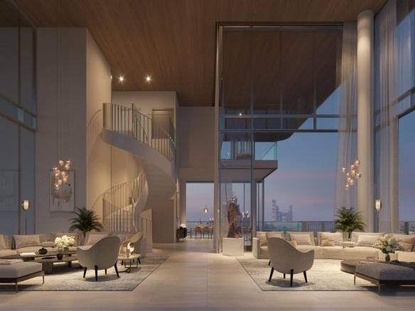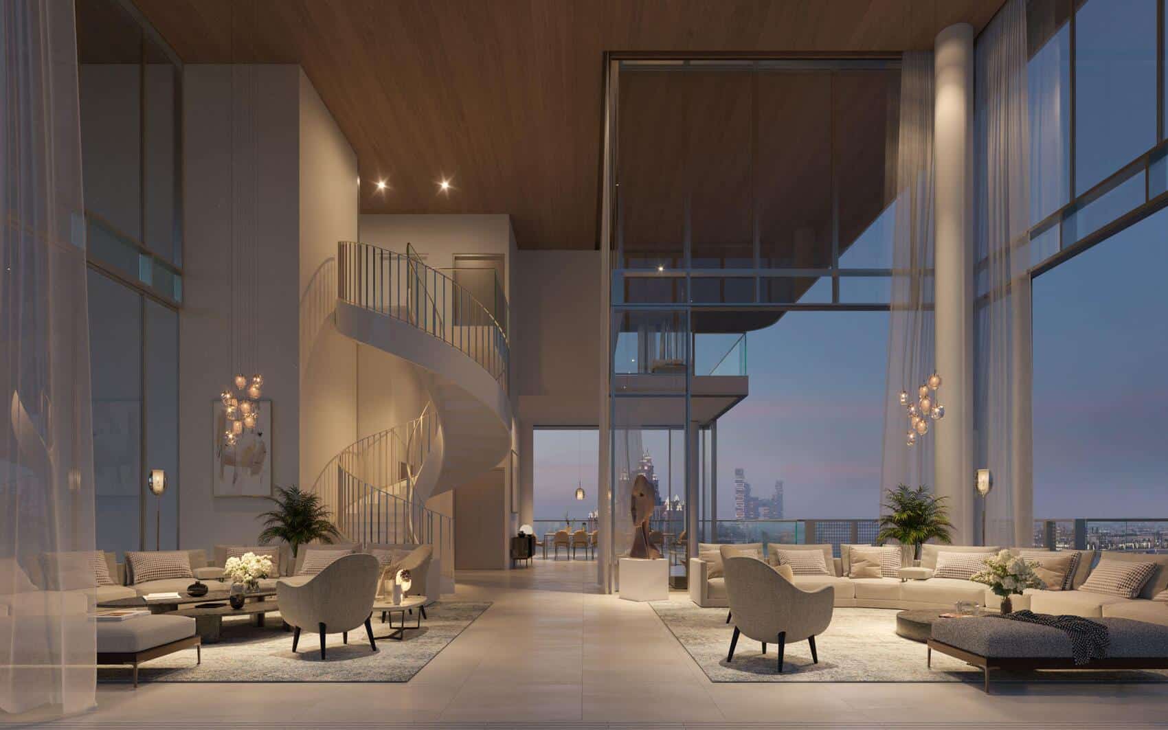 Royal Sky Mansion at Serenia, crowns the top floors of each Serenia Living tower. Spanning between 18,500 and 25,000 sq. ft., each residence offers unrivaled 360° views, bespoke interiors, soaring double-height ceilings, a private swimming pool, and a dedicated personal gym—delivering the pinnacle of ultra-luxury living. The buildings are designed with expansive glass façades that offer sweeping waterfront views from every residence. Inside, each apartment features modern interiors crafted with premium materials, creating a harmonious blend of comfort, elegance, and contemporary style.