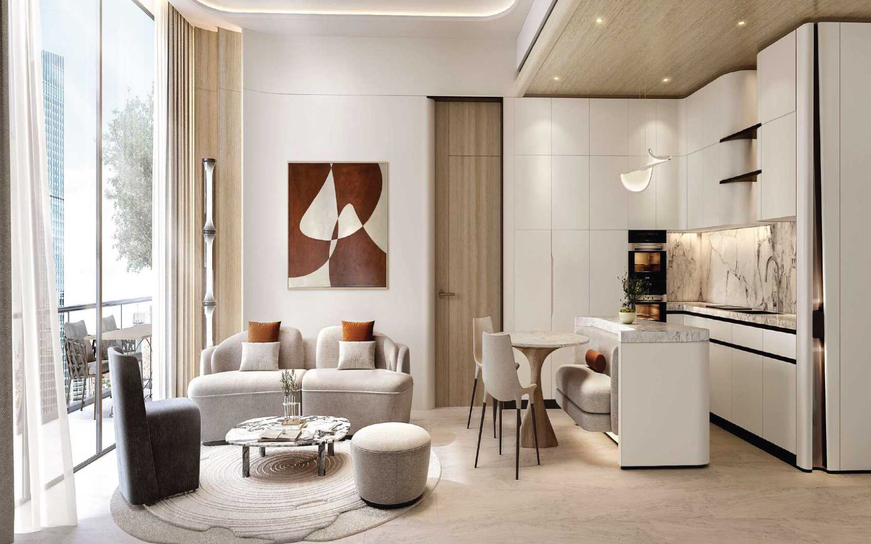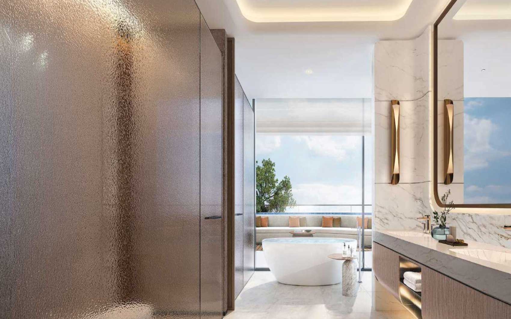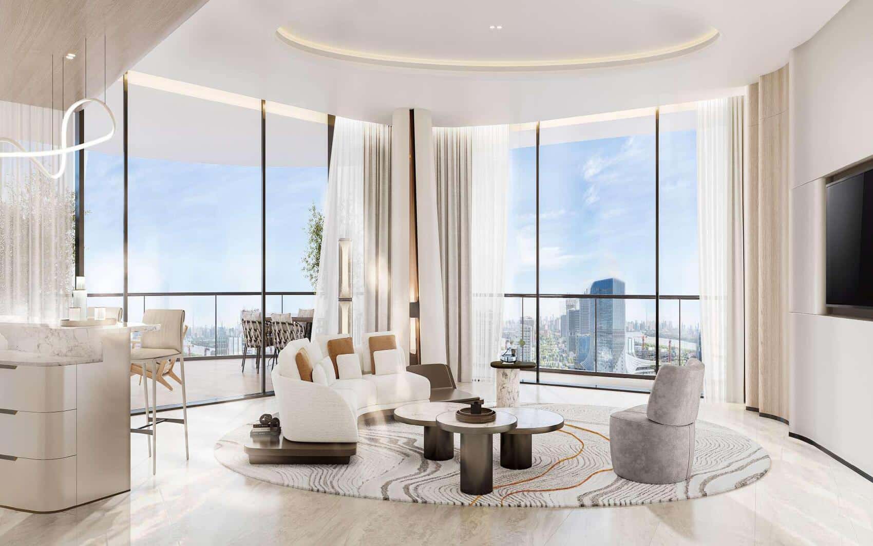 Sea View Penthouse at La Mazzoni comprises two striking towers, each rising 15 residential floors above a shared podium, and offering a curated selection of 1- to 3-bedroom residences—including penthouses, chalets, and duplexes. The architectural and interior design is crafted by the renowned DEWAN Architects and Engineers in collaboration with HBA Interior Design, ensuring a seamless blend of form and function. La Mazzoni reflects the natural rhythm of the ocean—merging the elegance of nature with the sophistication of modern architecture.