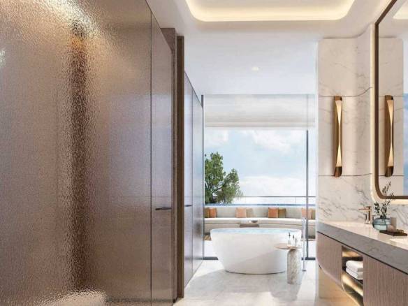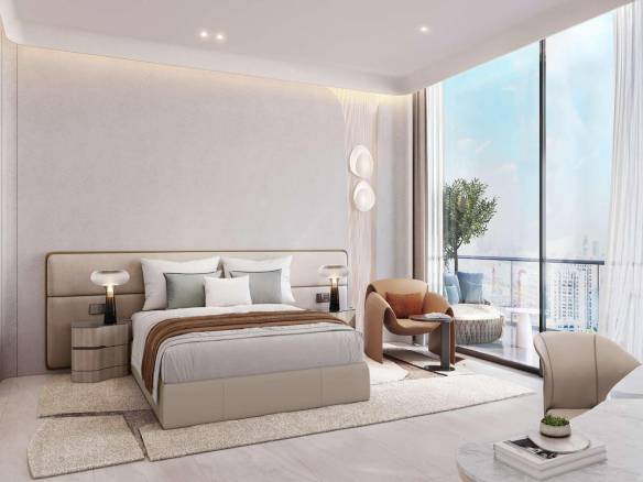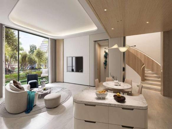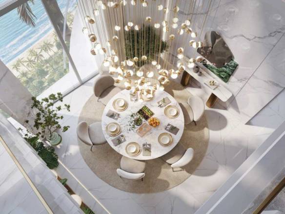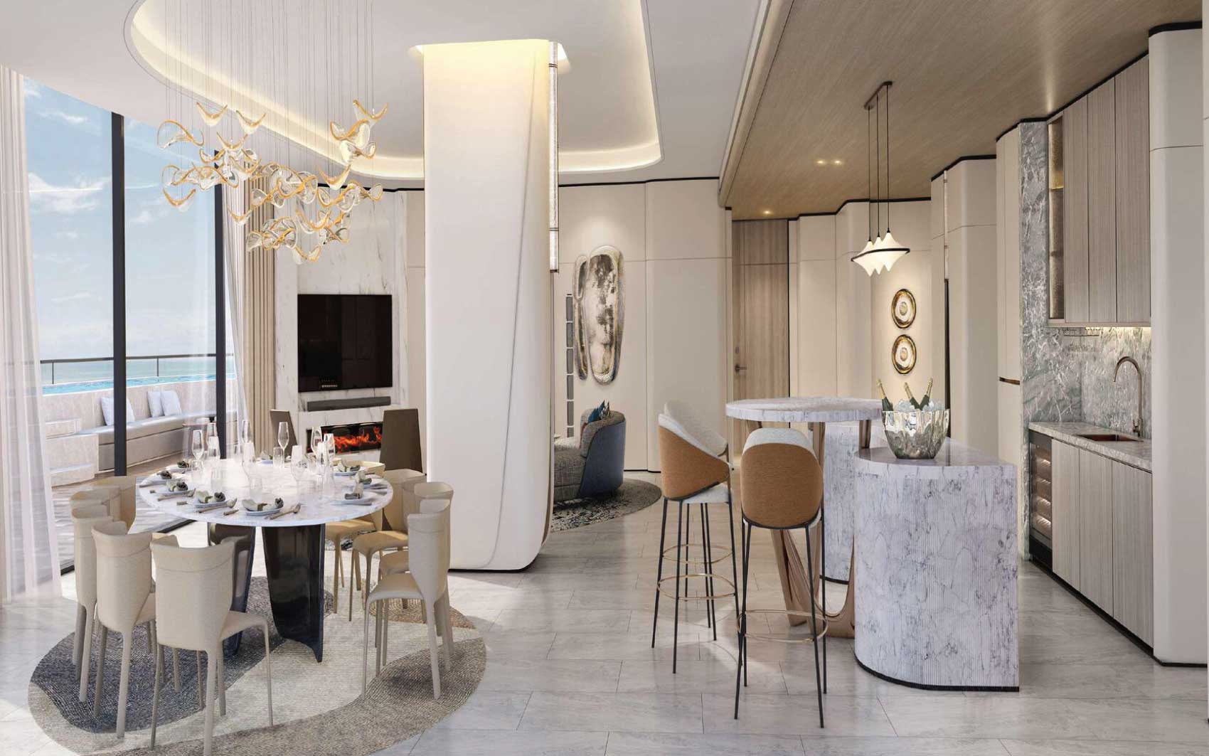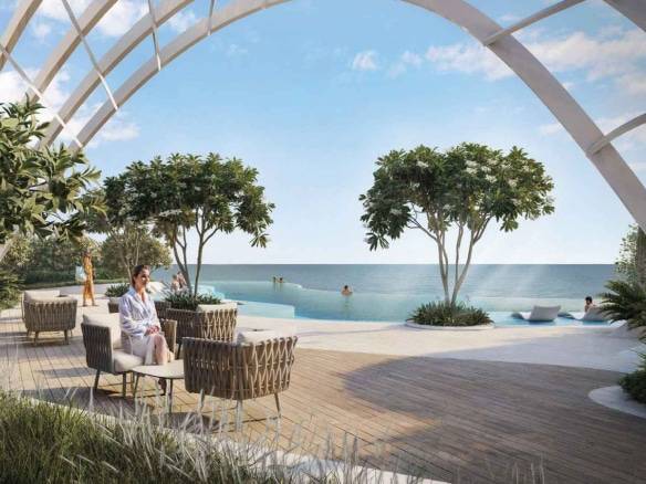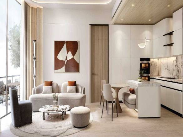 Sea View Penthouse at La Mazzoni comprises two striking towers, each rising 15 residential floors above a shared podium, and offering a curated selection of 1- to 3-bedroom residences—including penthouses, chalets, and duplexes. The architectural and interior design is crafted by the renowned DEWAN Architects and Engineers in collaboration with HBA Interior Design, ensuring a seamless blend of form and function. La Mazzoni reflects the natural rhythm of the ocean—merging the elegance of nature with the sophistication of modern architecture.
