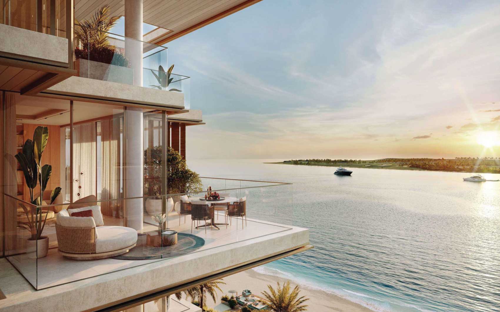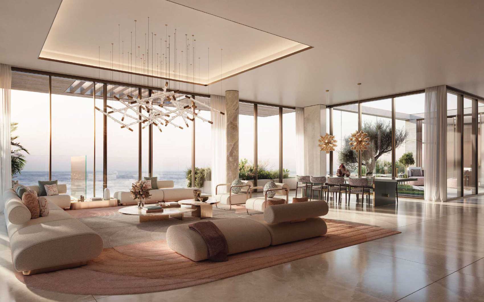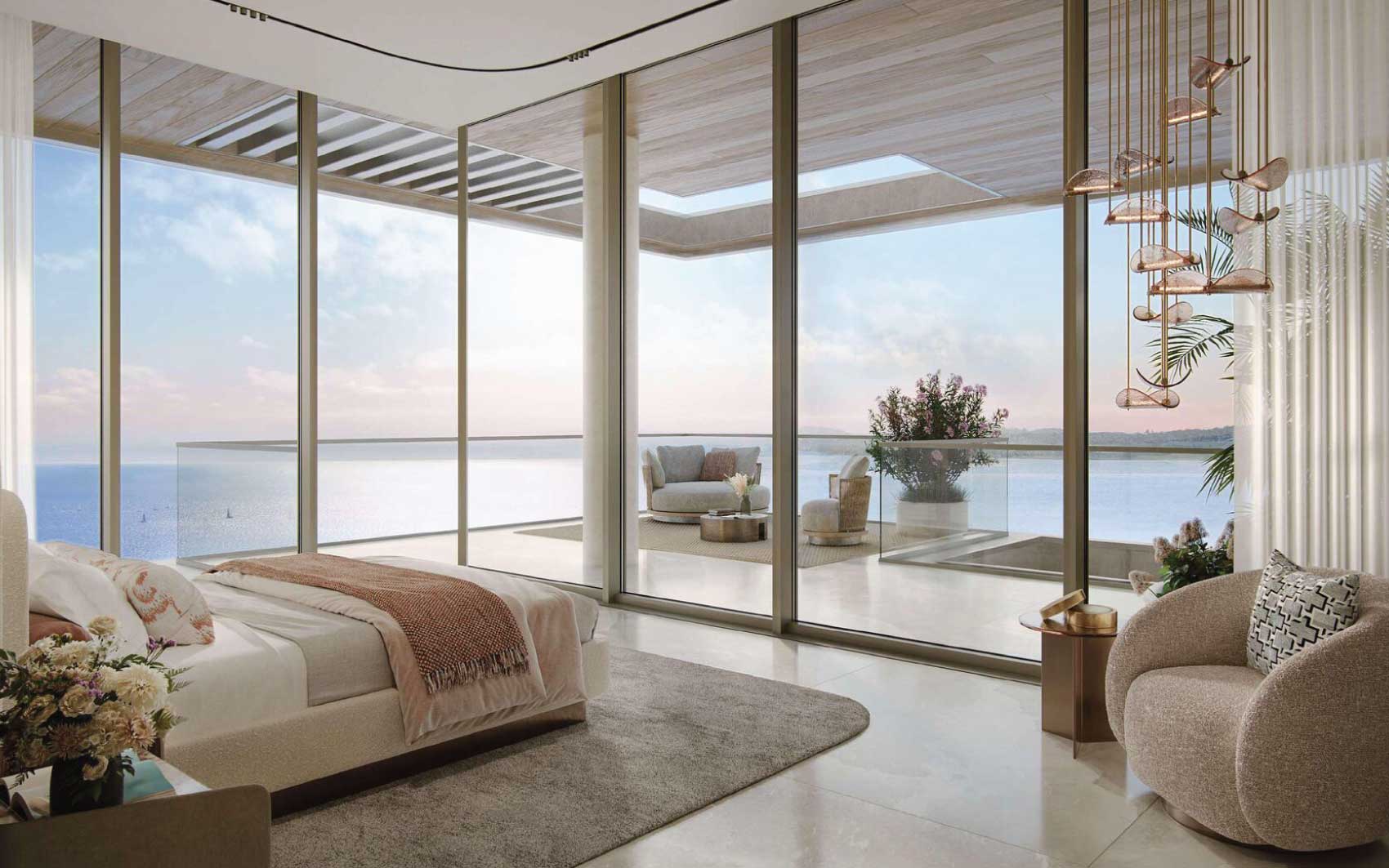 Shoaq Luxury Residences embrace natural light and island sophistication, with open, airy interiors, garden spaces that seamlessly extend to the shoreline, and elevated bedrooms displaying large, scenic views—an authentic embodiment of refined coastal living. Shoaq’s architectural design draws inspiration from the sea, seamlessly capturing the coastal charm in its form. The building’s angular structure allows natural light to flood every corner, while perimeter glazing framed in travertine and soft wooden accents lend a warm, elegant touch.