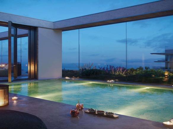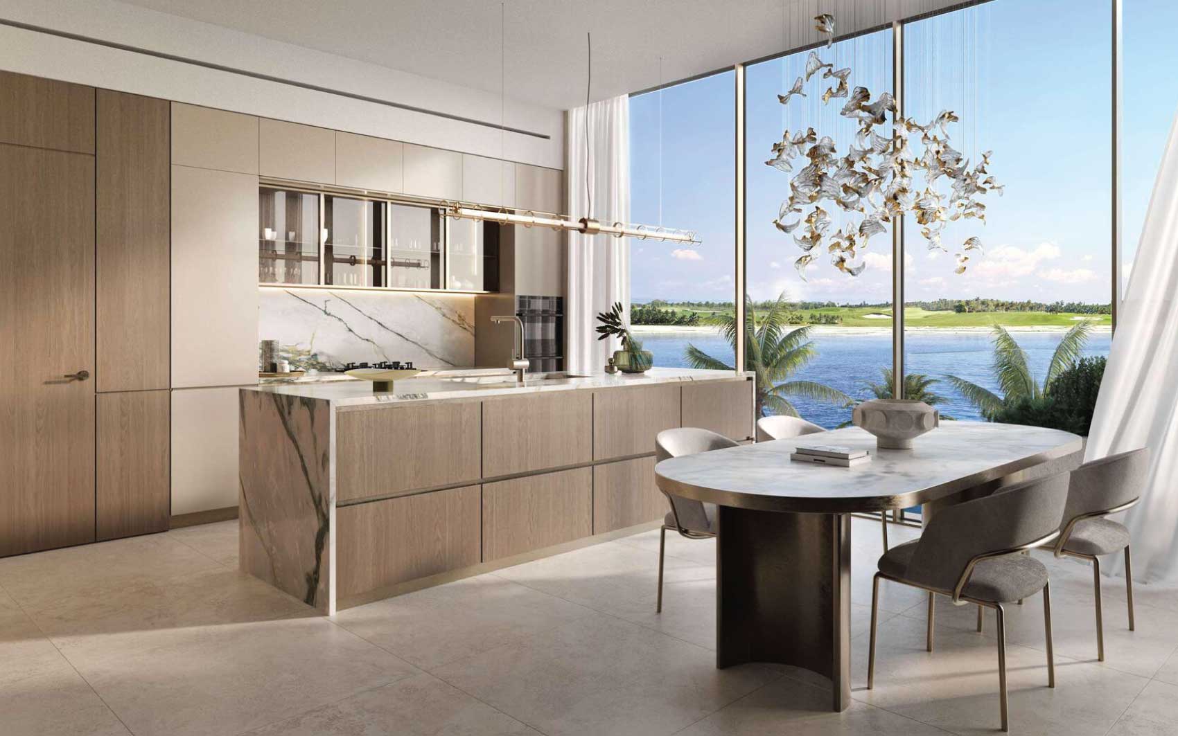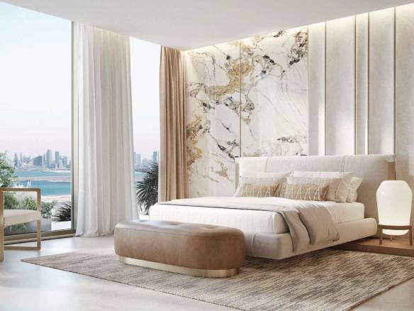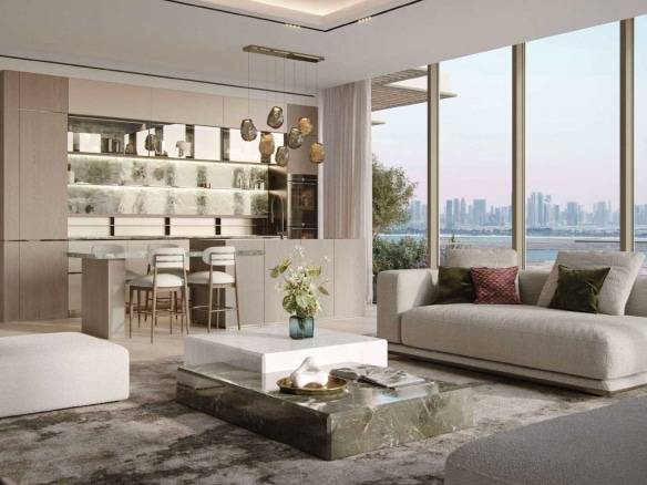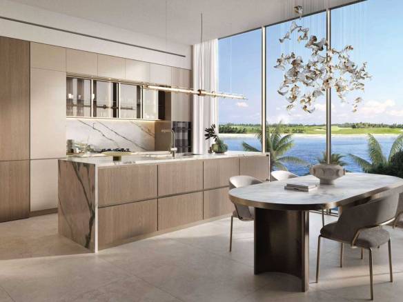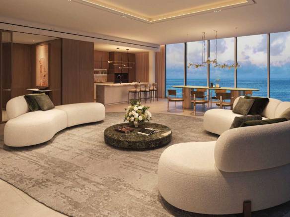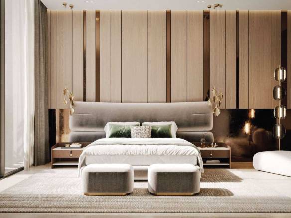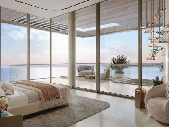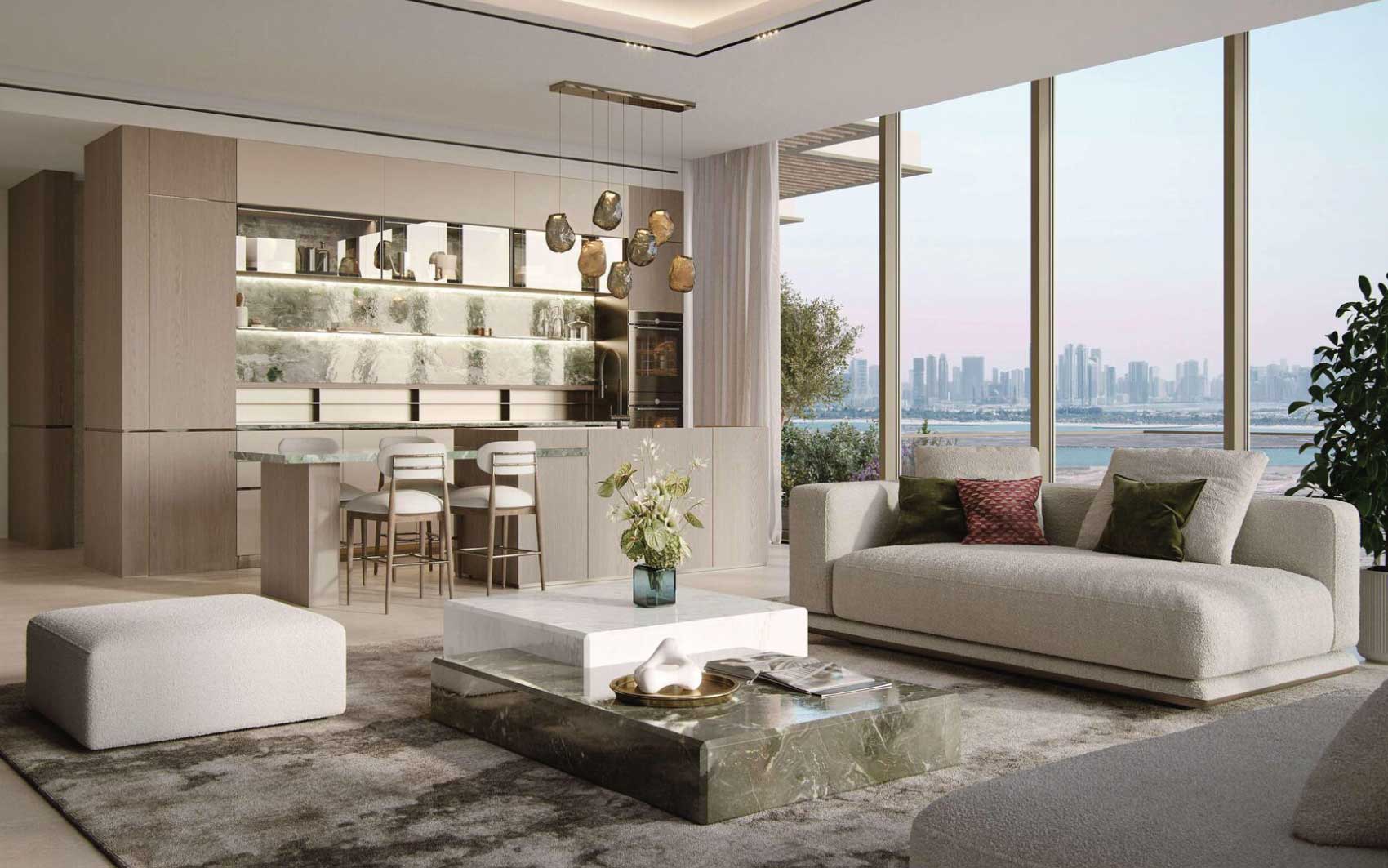 Shoaq Luxury Residences embrace natural light and island sophistication, with open, airy interiors, garden spaces that seamlessly extend to the shoreline, and elevated bedrooms displaying large, scenic views—an authentic embodiment of refined coastal living. Shoaq’s architectural design draws inspiration from the sea, seamlessly capturing the coastal charm in its form. The building’s angular structure allows natural light to flood every corner, while perimeter glazing framed in travertine and soft wooden accents lend a warm, elegant touch.
