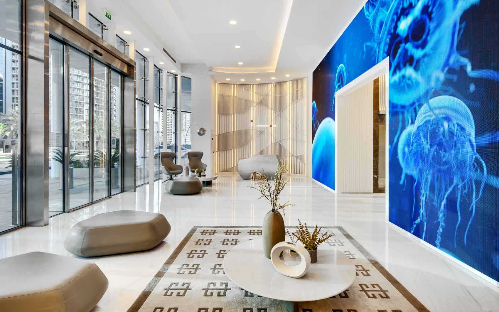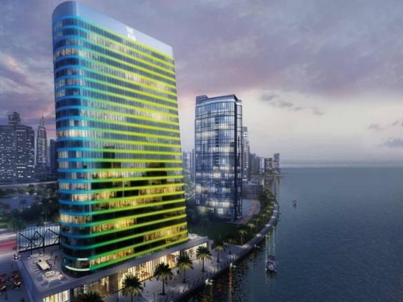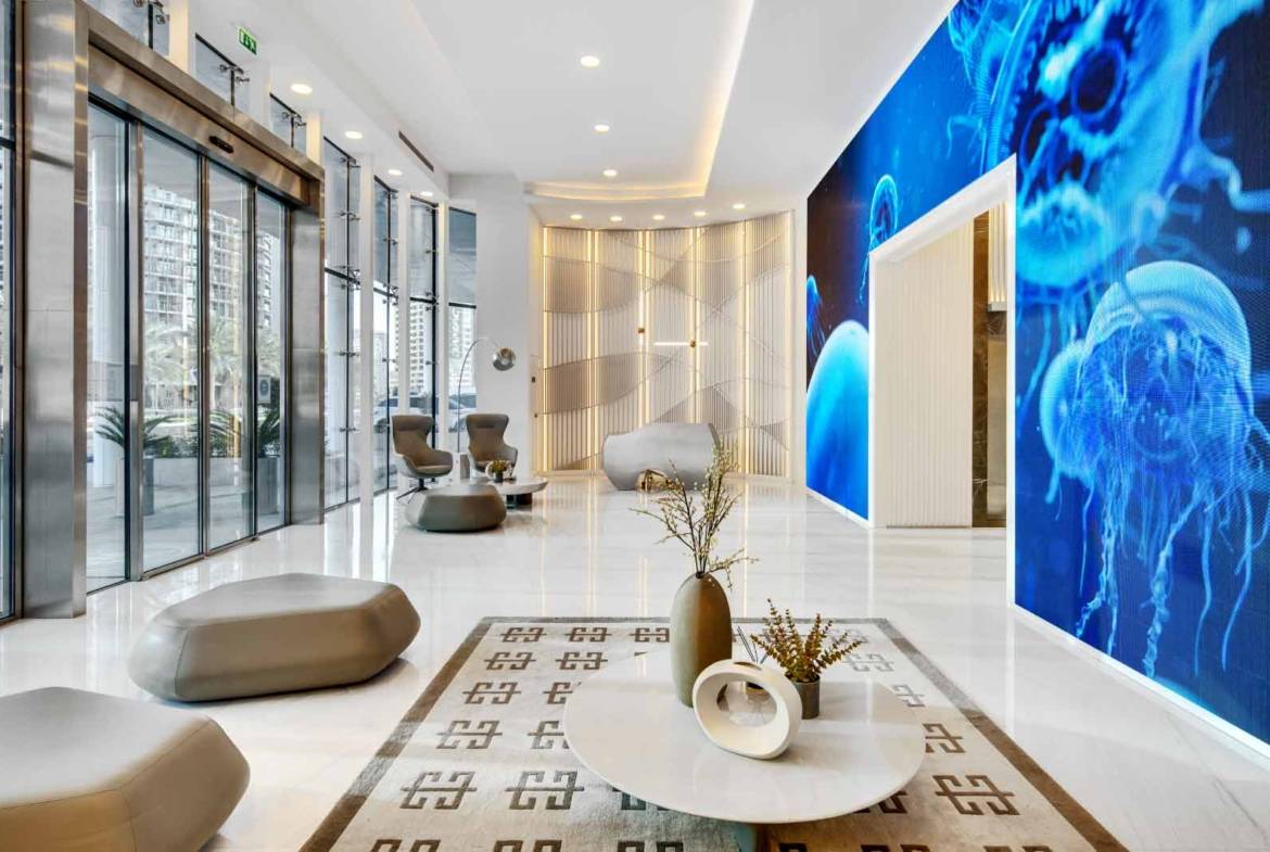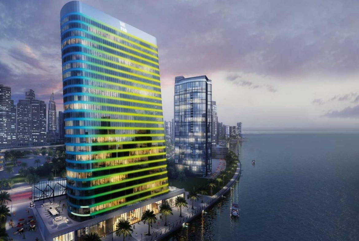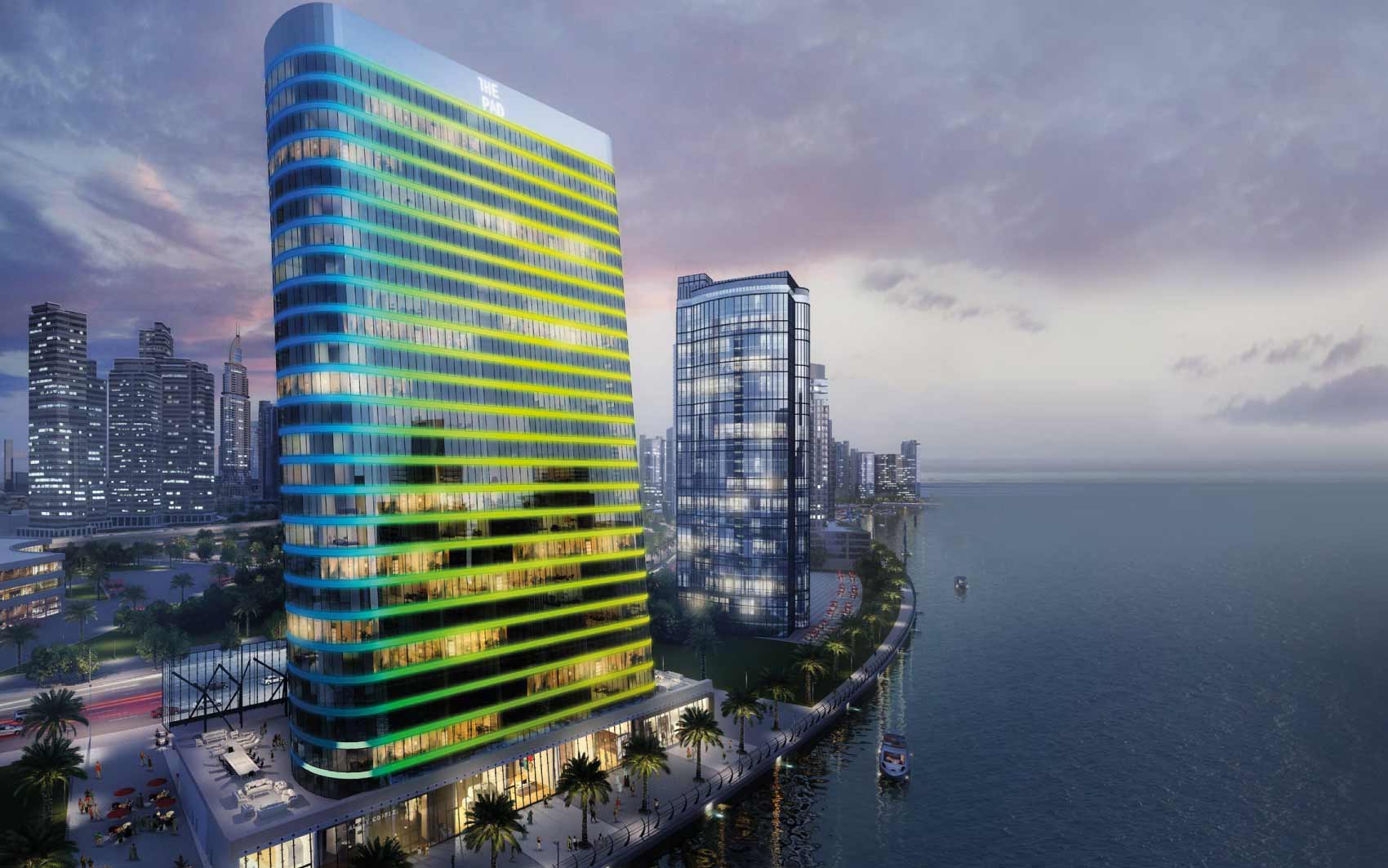 The Pad brings South Beach flair to Dubai. Tilted at a 6.5° angle and bathed in LED lighting, this chic, sophisticated condo is the crown jewel of Creek living, offering stunning views of Burj Khalifa and the sea. By day, its unique facade shimmers with the blend of sea, sun, and sky, while by night, it transforms from vibrant disco to the mysterious allure of desert stars.