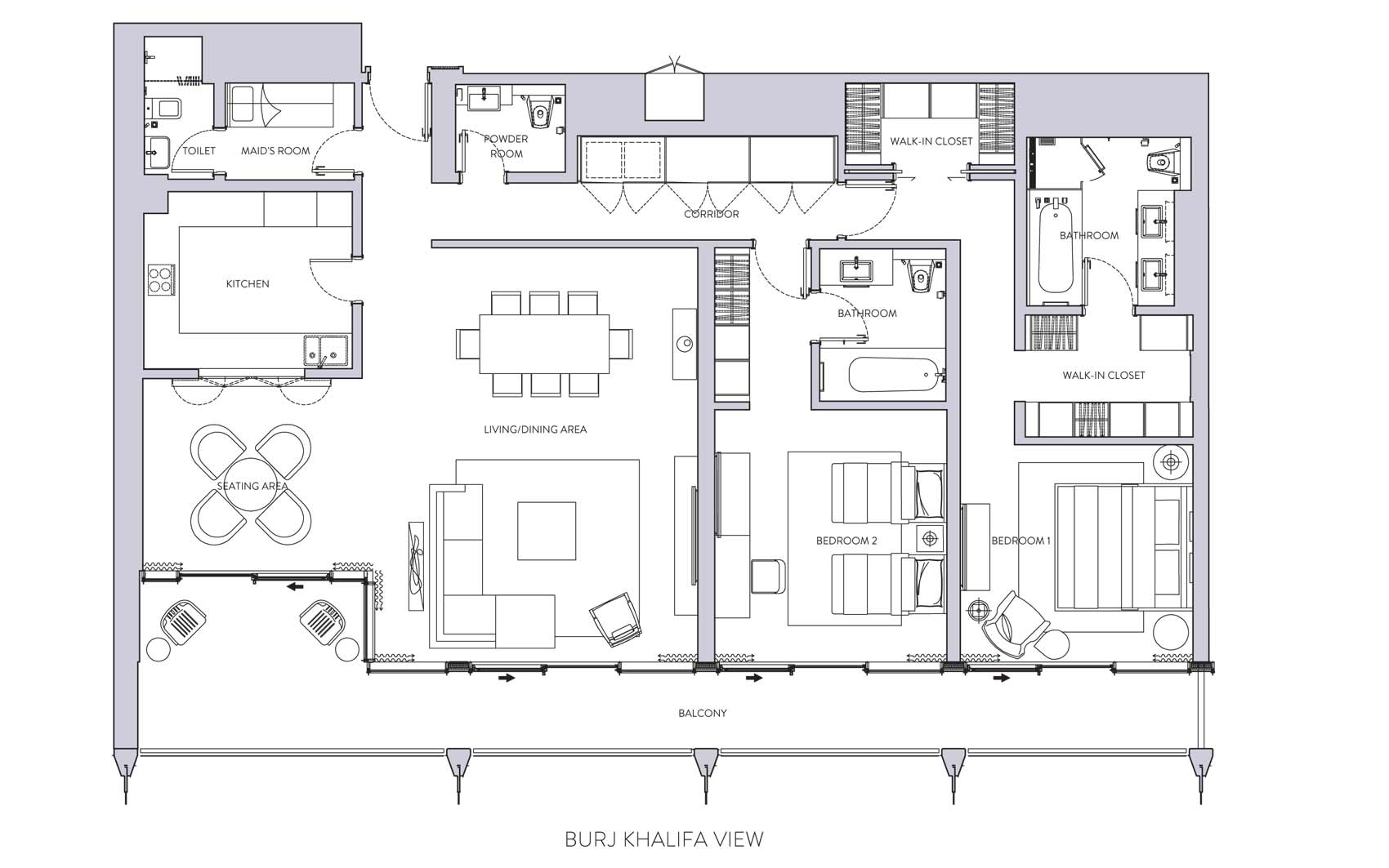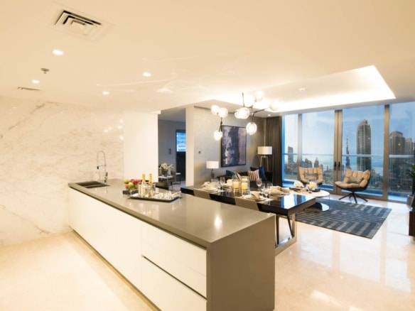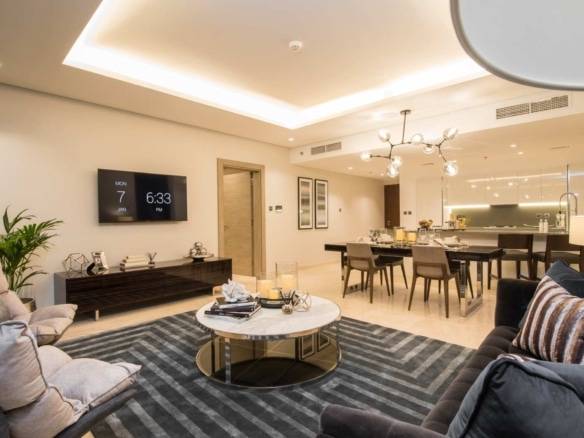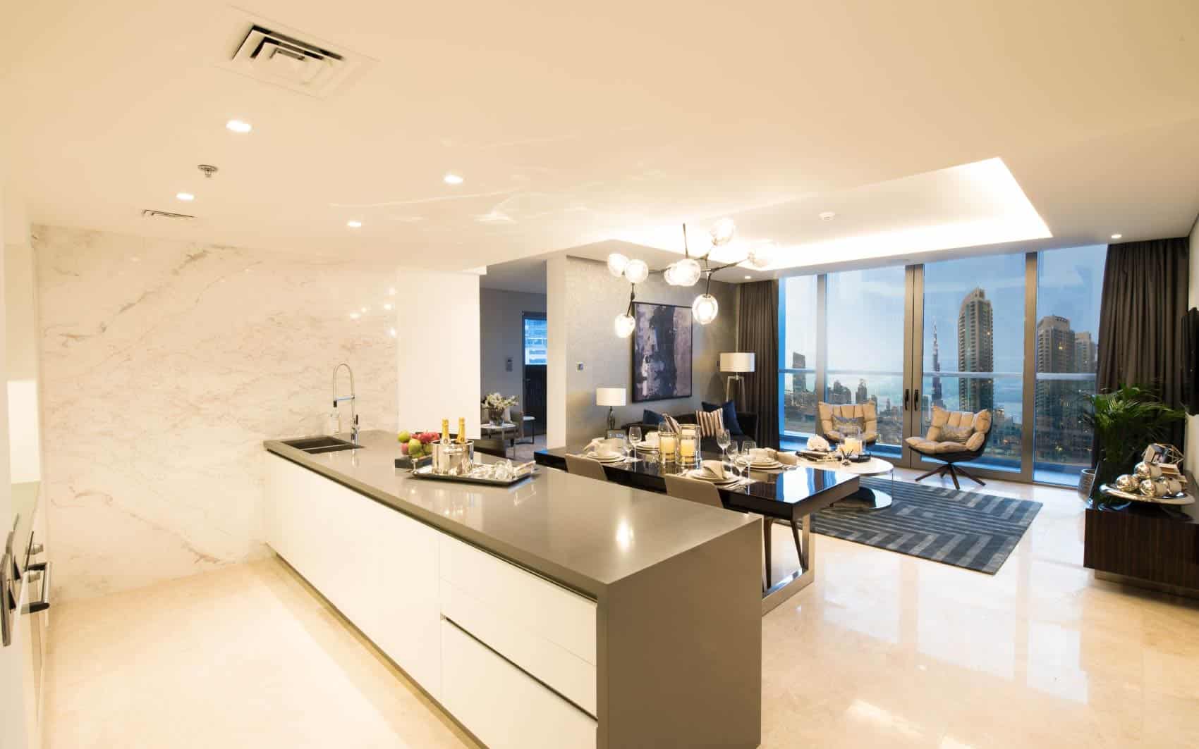 Welcome from a 2-bedroom apartment plus maid’s at the Sterling East House, Downtown Dubai by Omniyat. The apartment offers residents access to the Dubai Mall, the world’s largest shopping center, embodying endless potential and elegance.