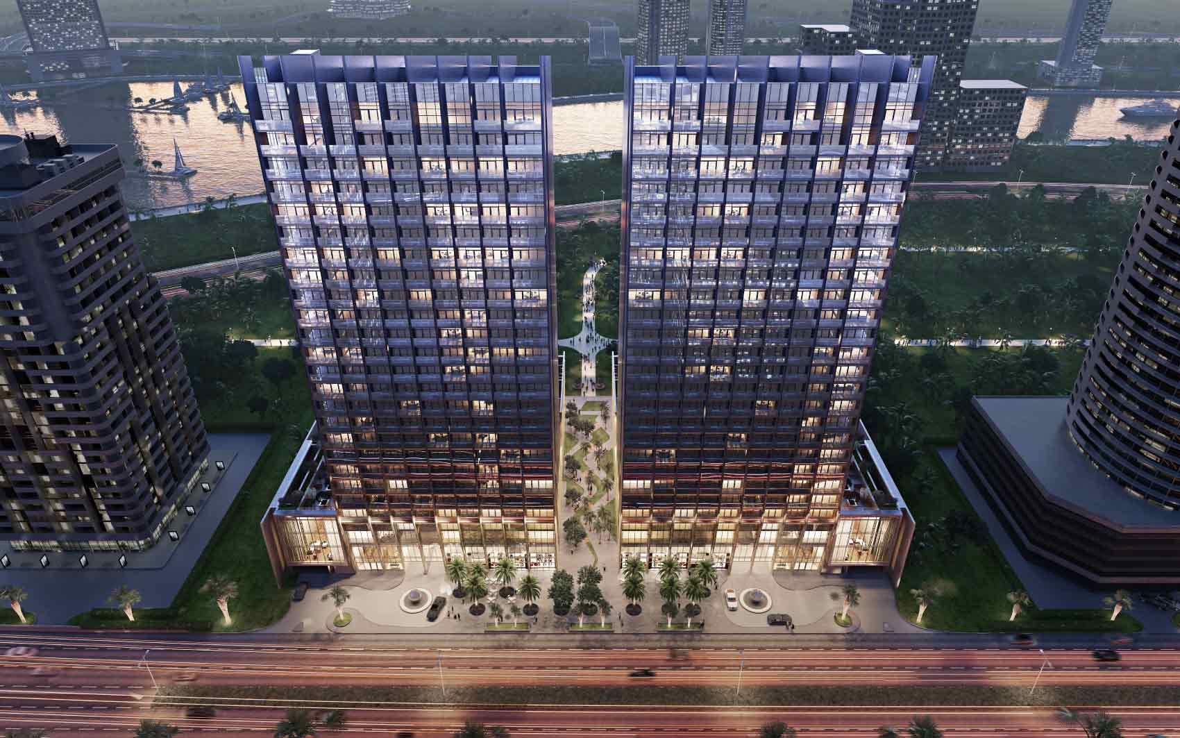 The Sterling is a remarkable residential development in the heart of Dubai, situated between the Burj Khalifa District and the stunning Dubai Water Canal. Its chrome-finished façade and platinum twin towers shine as the city’s jewels, reflecting Dubai’s vibrant nightlife and starry skies. Standing tall amongst Dubai’s finest, its striking twin-towers mirror the life of the city, glistening with its lights and stars in the darkness of night.