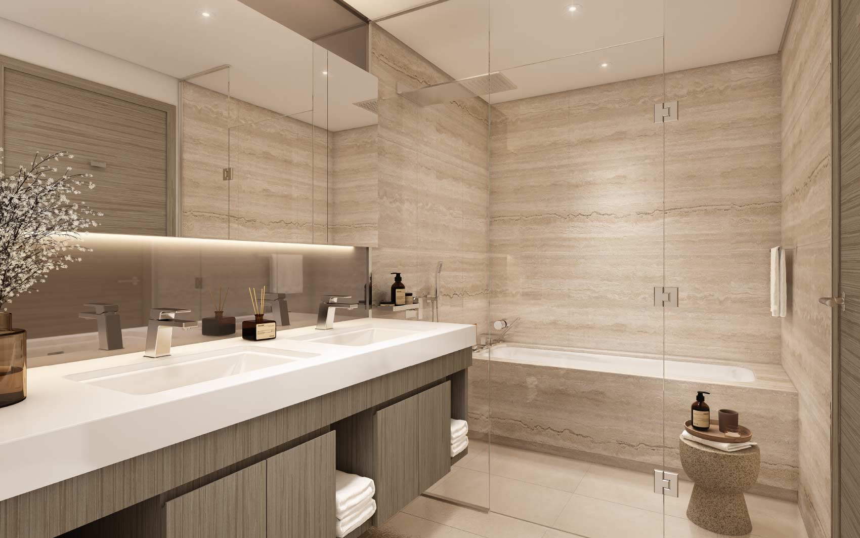 The Sterling is a remarkable residential development in the heart of Dubai, situated between the Burj Khalifa District and the stunning Dubai Water Canal. Its chrome-finished façade and platinum twin towers shine as the city’s jewels, reflecting Dubai’s vibrant nightlife and starry skies. Standing tall amongst Dubai’s finest, The Sterling’s striking twin-towers mirror the life of the city, glistening with its lights and stars in the darkness of night.