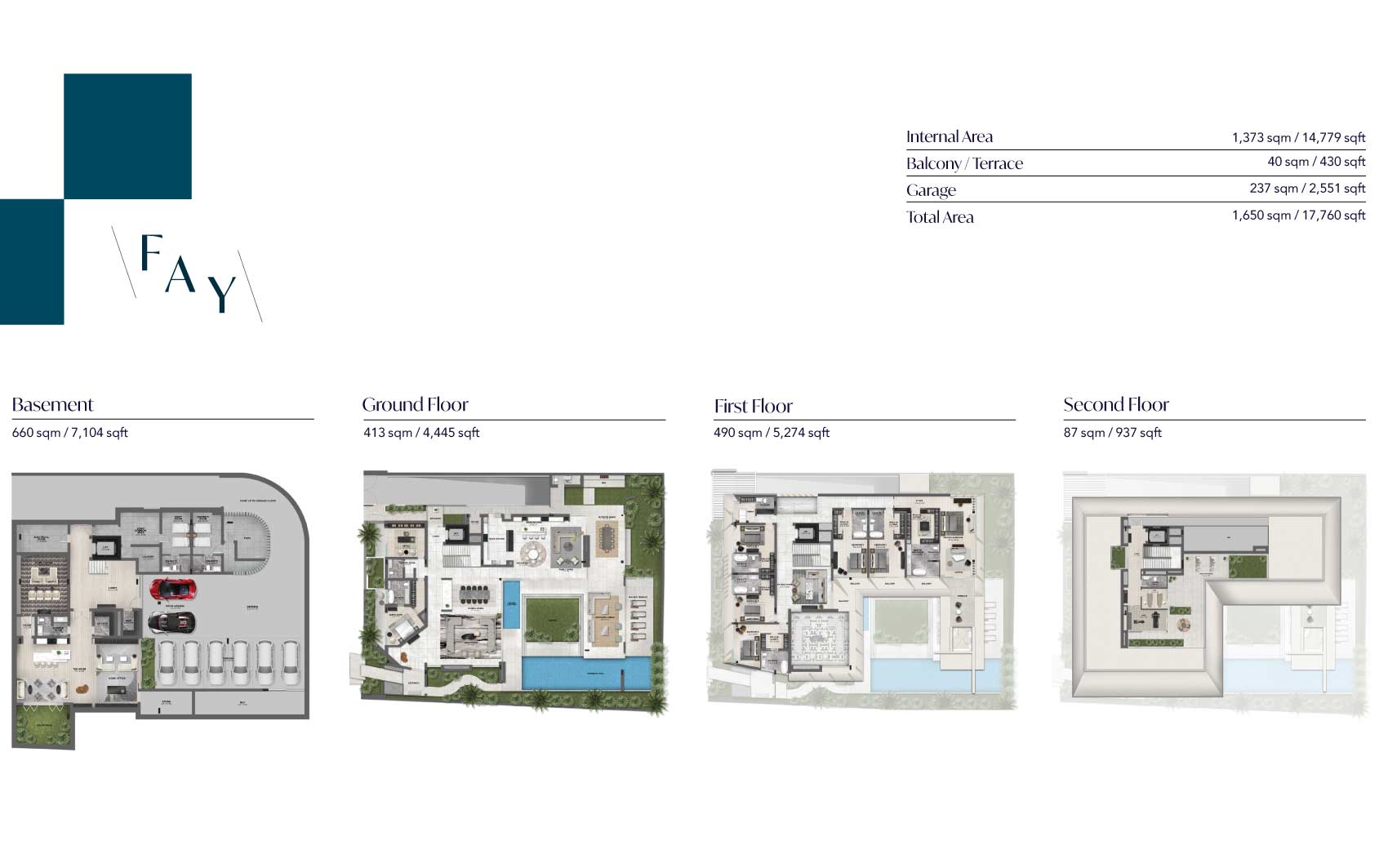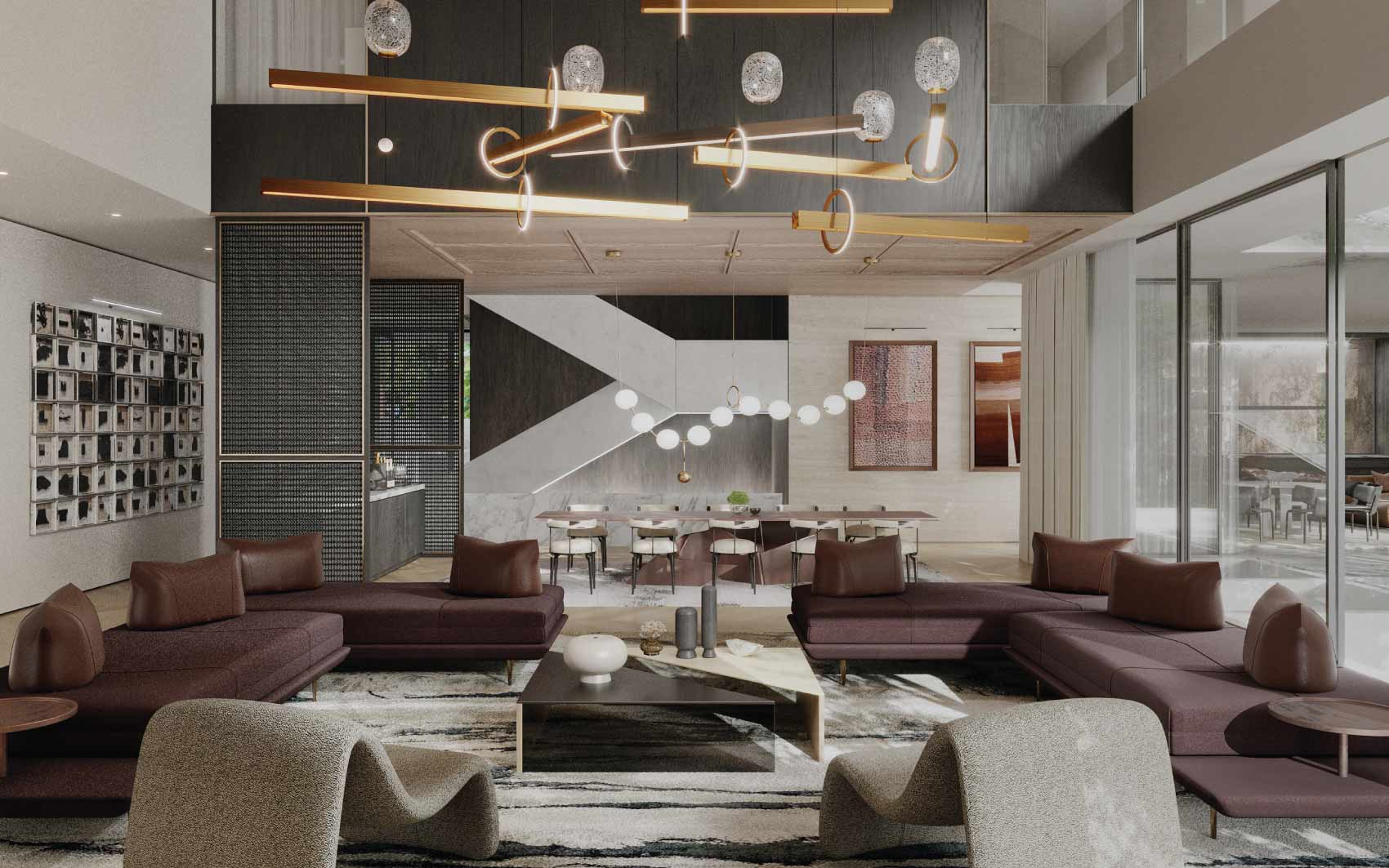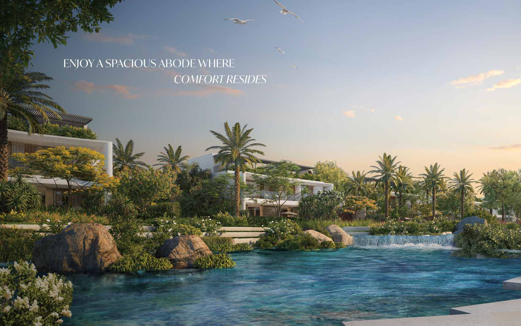 Fay lagoon mansion is an architecturally bold and expressive residence, drawing inspiration from the vibrant character of the city and the De Stijl art movement. This mansion is located in the heart of the project and faces the crystal-blue lagoon and artificial beach.