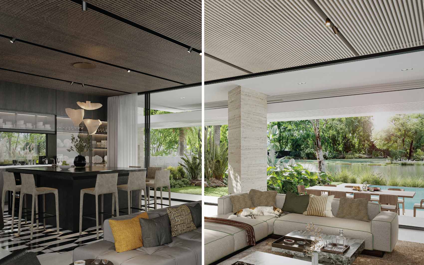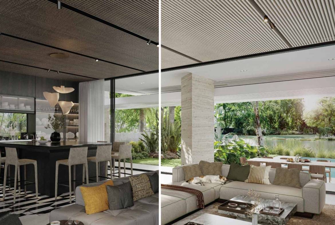 Discover a 7-bedroom Kai lagoon mansion at Serenity Mansions, Tilal Al Ghaf by Majid Al Futtaim. This mansion features a meticulously designed, fragmented structure with a central courtyard that enhances light and airflow. The seamless integration of indoor and outdoor spaces offers unobstructed garden views and a grand double-height lounge ideal for large gatherings.
