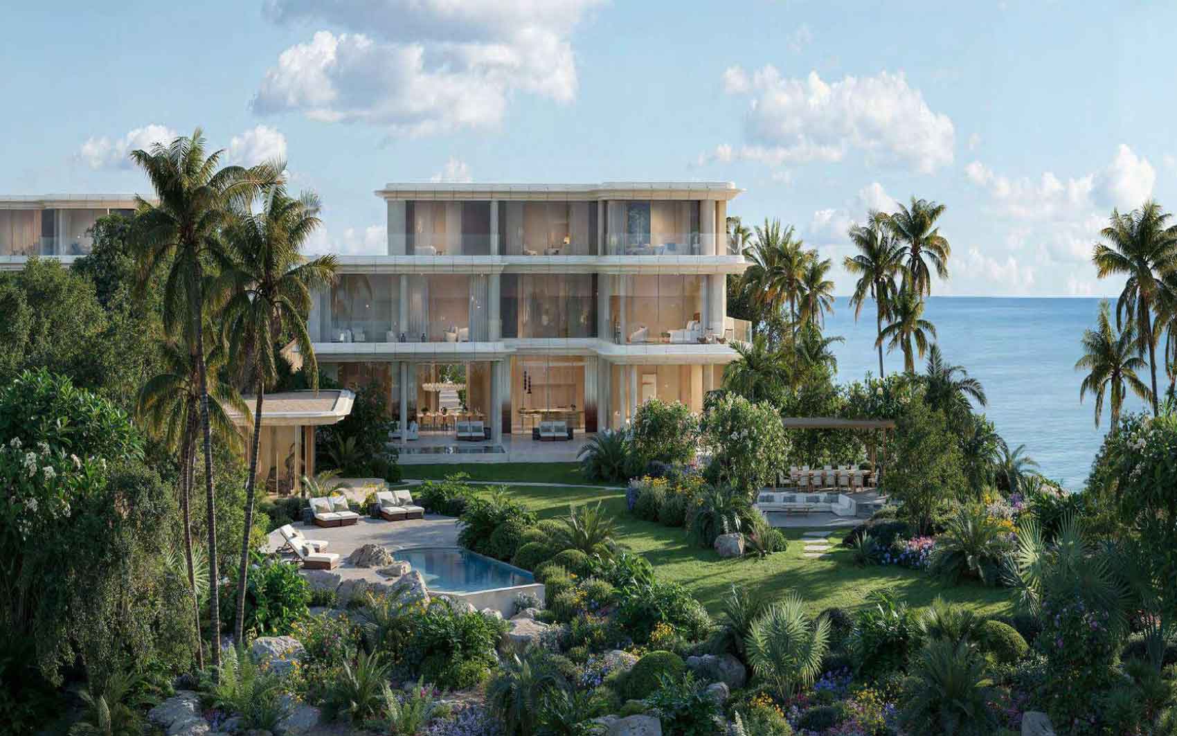 Ultra-Luxury Waterfront Villa, the development is distinguished by its stunning architecture and uninterrupted sea views. Each residence offers generous living spaces, premium finishes, and integrated smart home technology. A one-of-a-kind lifestyle through its exclusive collection of four- to seven-bedroom residences. Each home is thoughtfully designed as a private sanctuary, blending expansive personal amenities with elegant shared spaces — offering a perfect balance of luxury, comfort, and privacy. Residents and guests enjoy a warm, relaxing atmosphere with access to a spa, private club, and spaces designed for comfort and wellness.