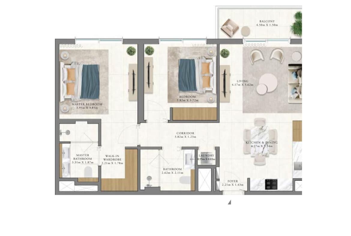 Welcome to a two-bedroom corner apartment at Vida Residences Club Point, Dubai Hills Estate. Developed by Emaar Properties, this Vida Residences Club Point reflects the vibrant spirit of Vida Hotels & Resorts, known for its modern design, lively atmosphere, and a focus on simplicity and creativity.